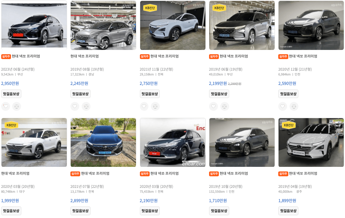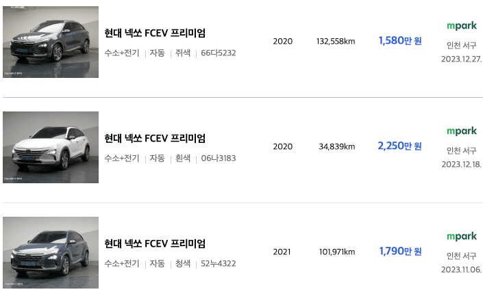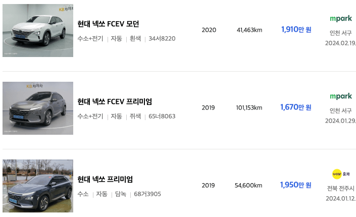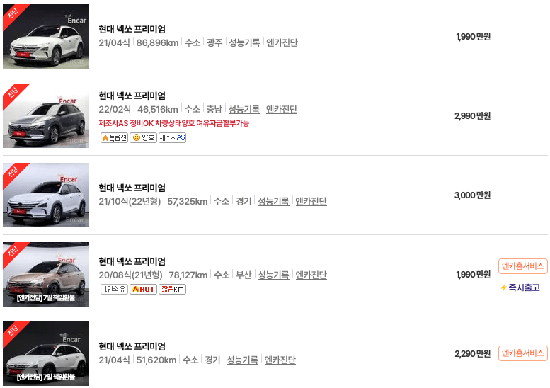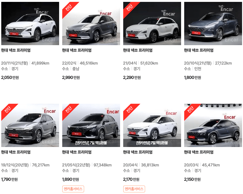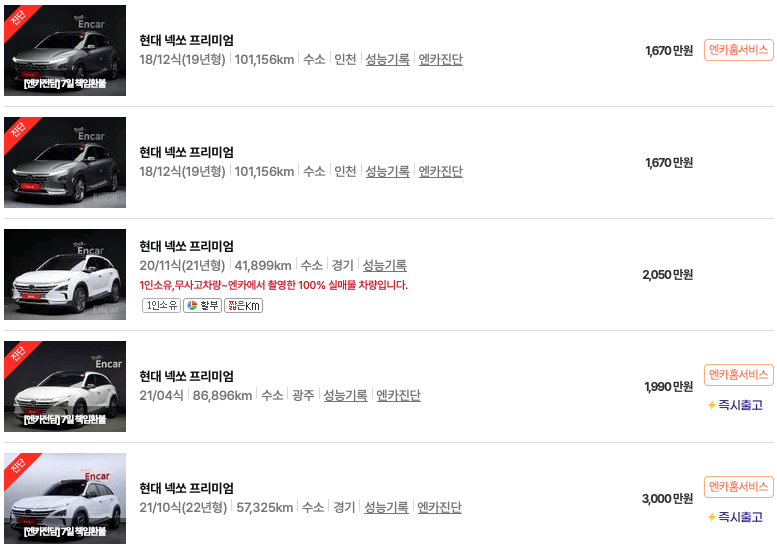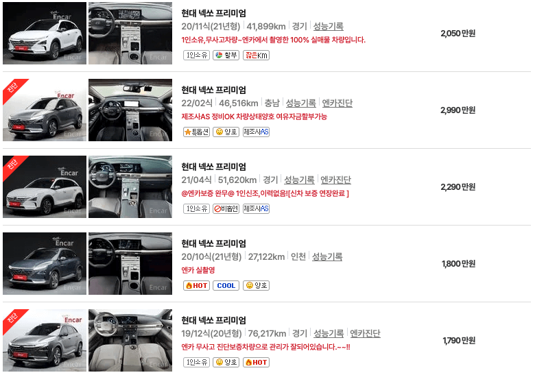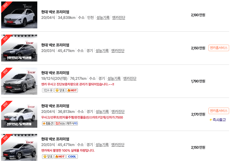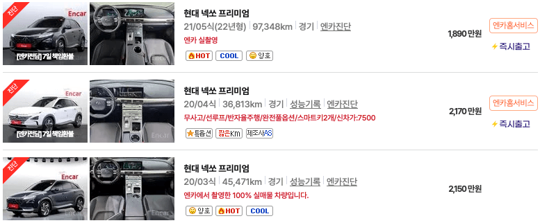 엔카 등록 넥쏘 중고차 가격표