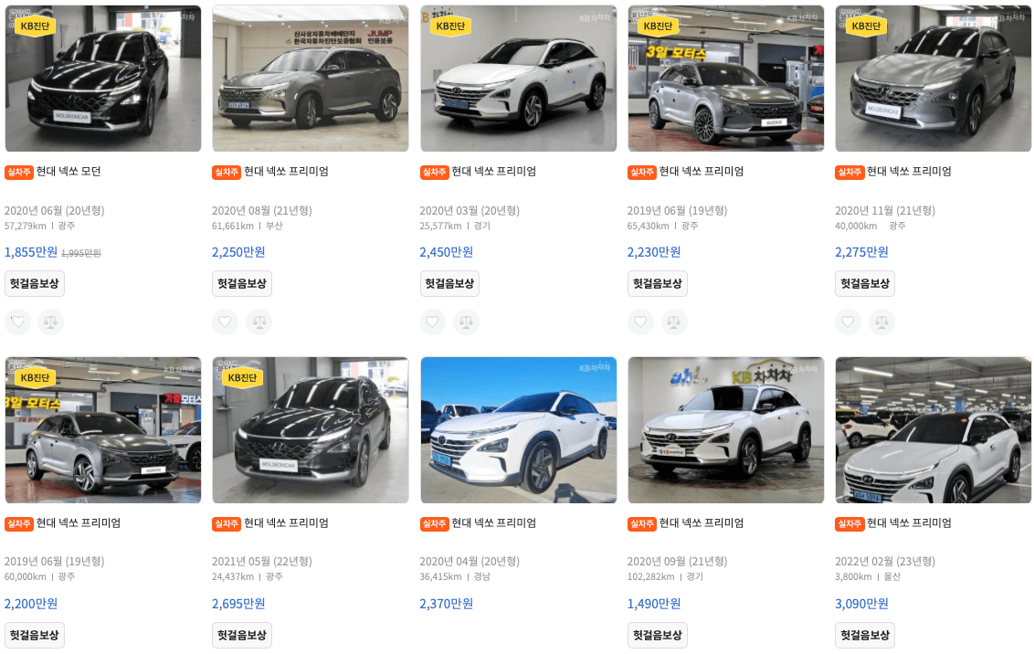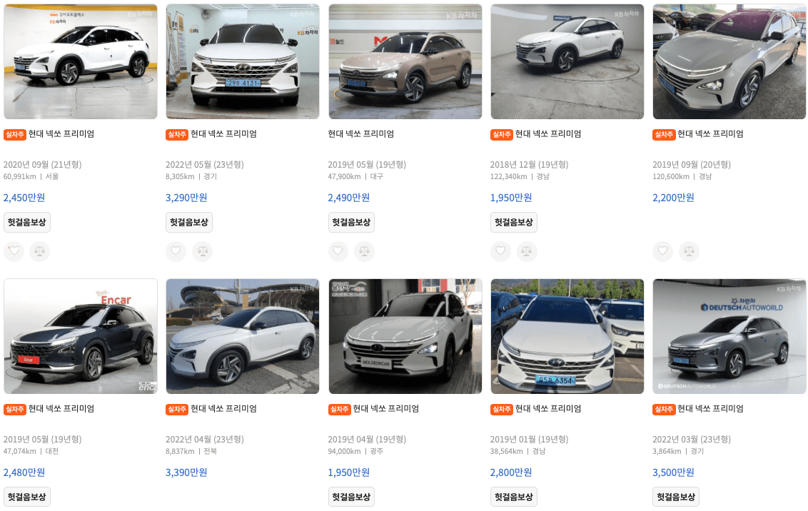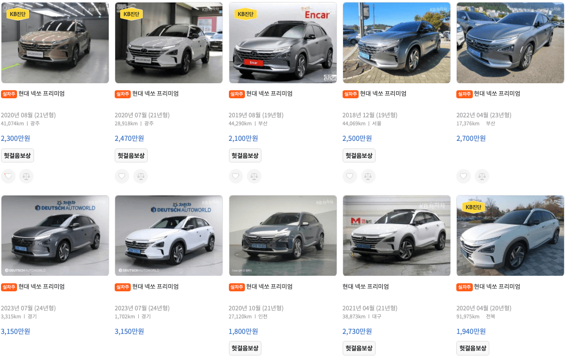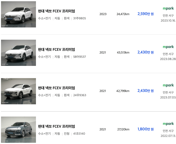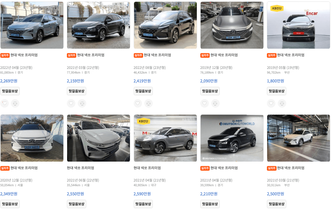 엔카 등록 넥쏘 중고차 가격표