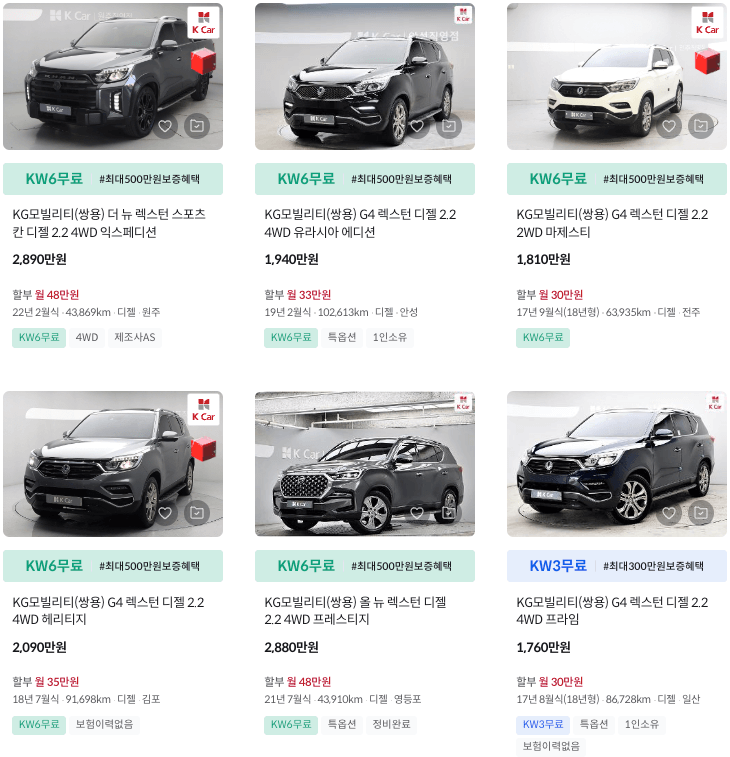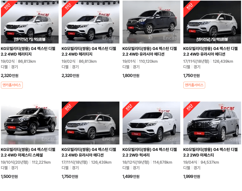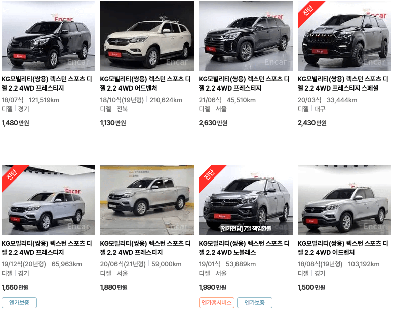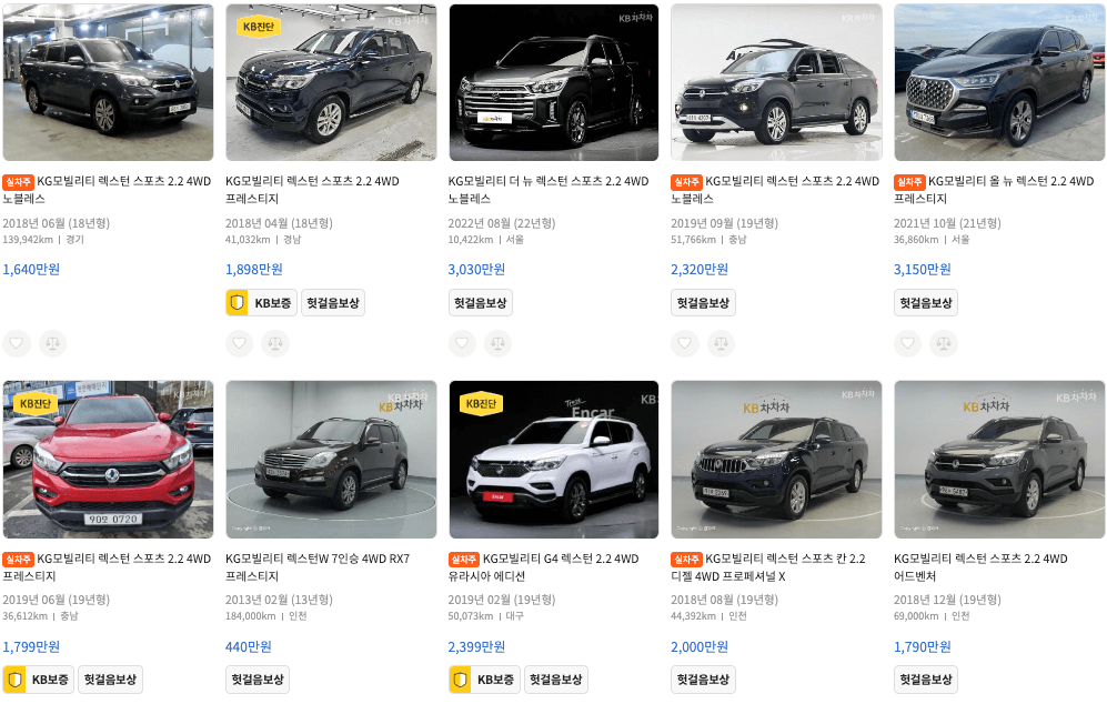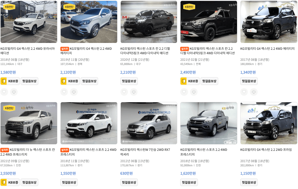 렉스턴 2001년부터 모든 연식과 모델의 중고 시세표와 중고차 가격 정보를 담았습니다.