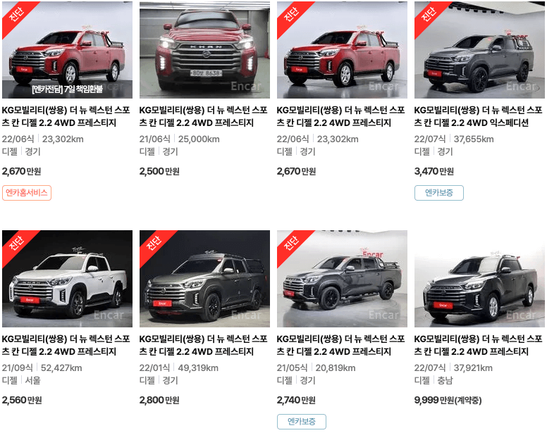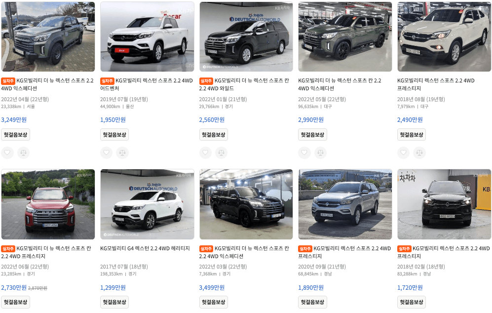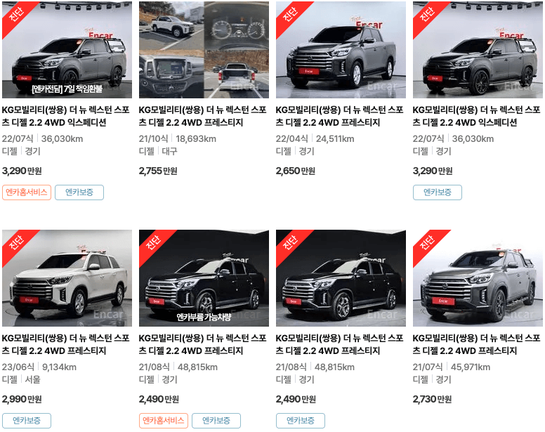 더 뉴 렉스턴 스포츠 칸 중고차 시세표