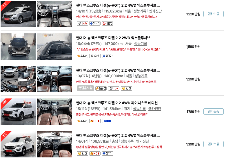 싼타페 중고차 가격 시세표 모델별 정리했어요. 2024 하이브리드부터 mx5, tm, DM 등 신형부터 오래된 구형 모델까지 시세표입니다. 국내 대형 중고차 사이트 등록된 매물도 함께 볼 수 있어요. 요즘