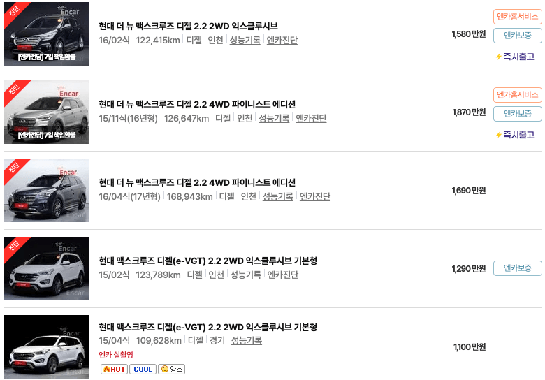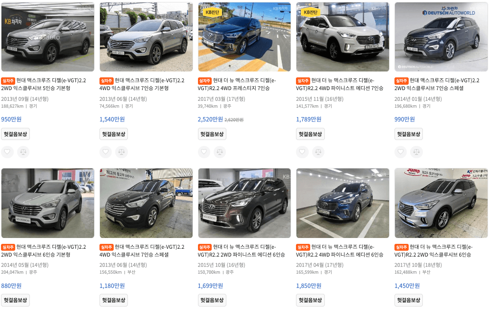 싼타페 중고차 가격 시세표 모델별 정리했어요. 2024 하이브리드부터 mx5, tm, DM 등 신형부터 오래된 구형 모델까지 시세표입니다. 국내 대형 중고차 사이트 등록된 매물도 함께 볼 수 있어요. 요즘