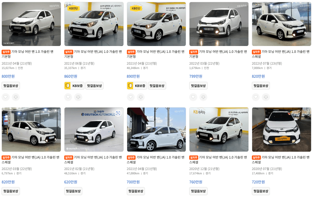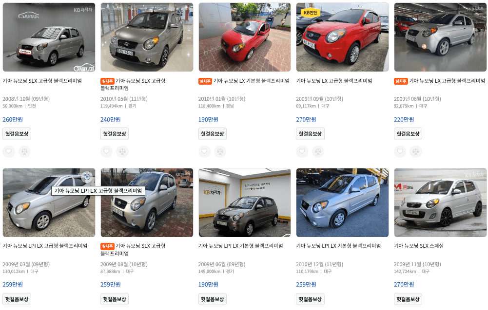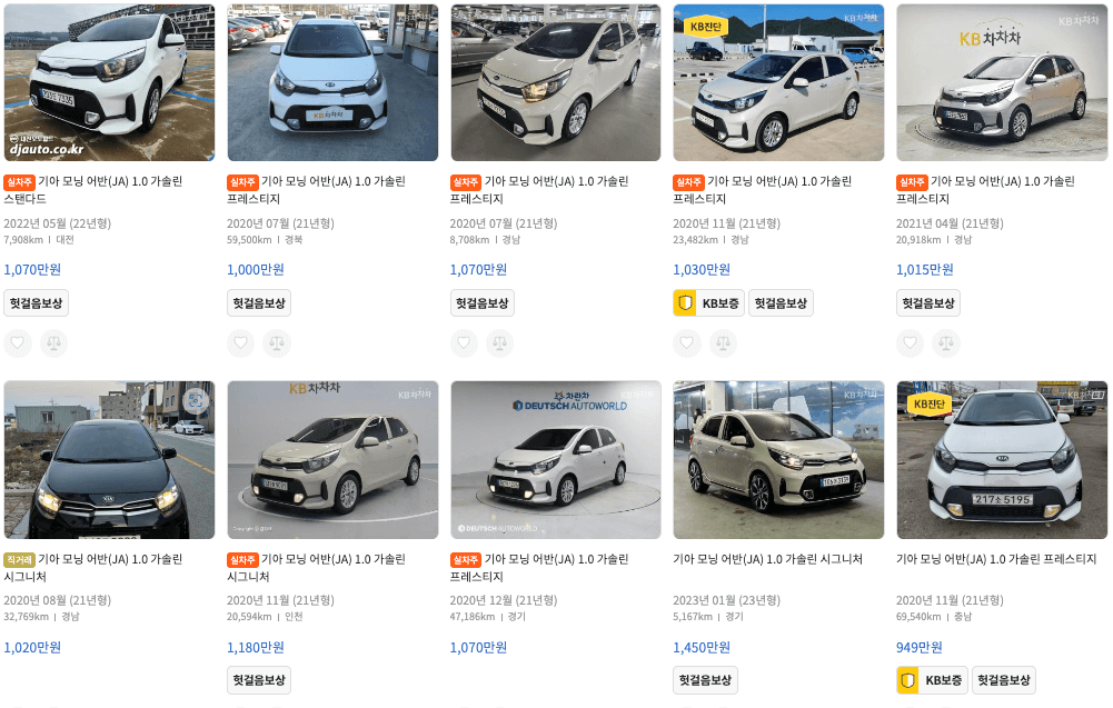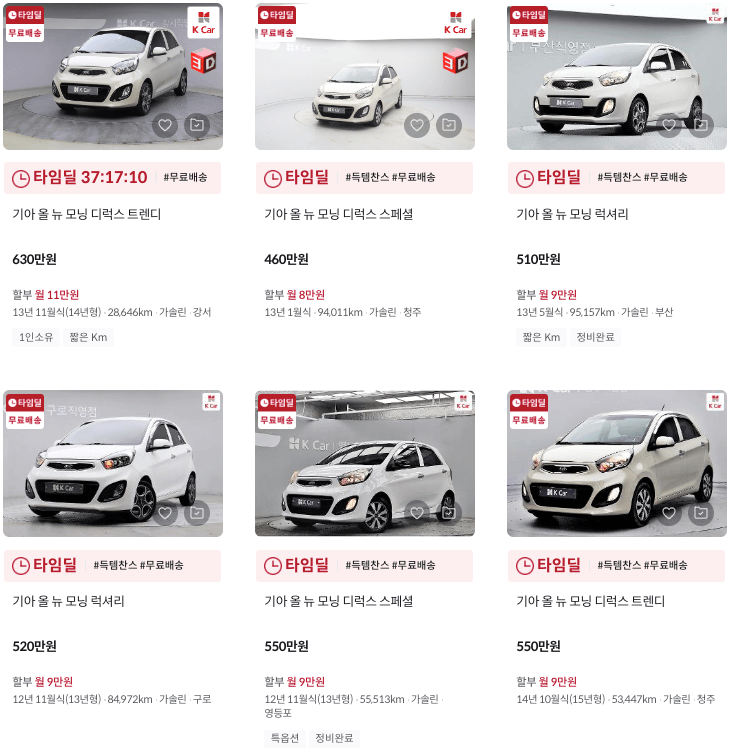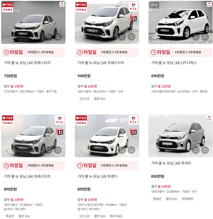 K카 모닝 중고차 가격
