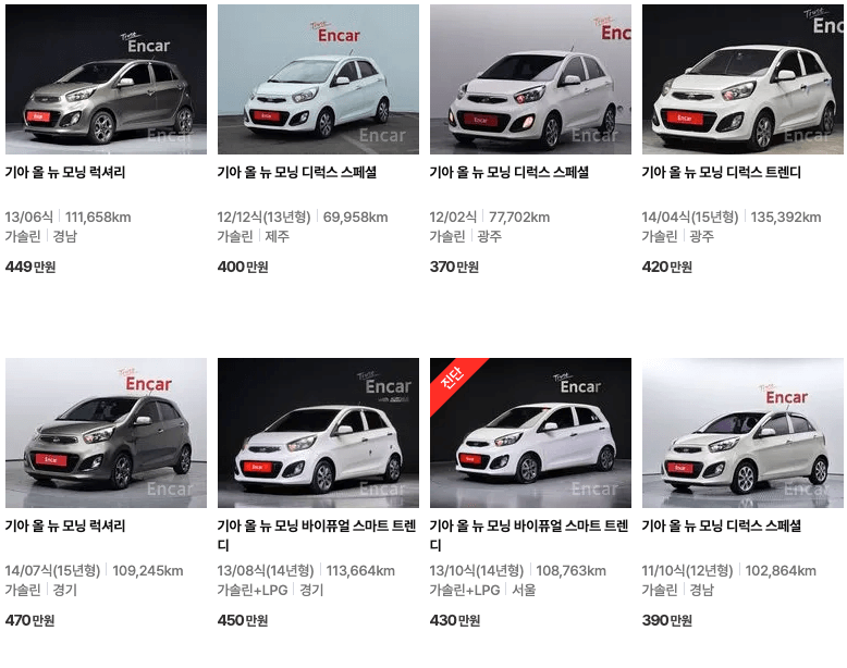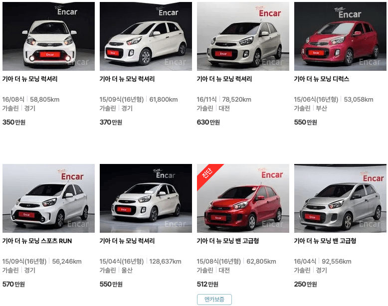 엔카 등록 모닝 중고차 가격
