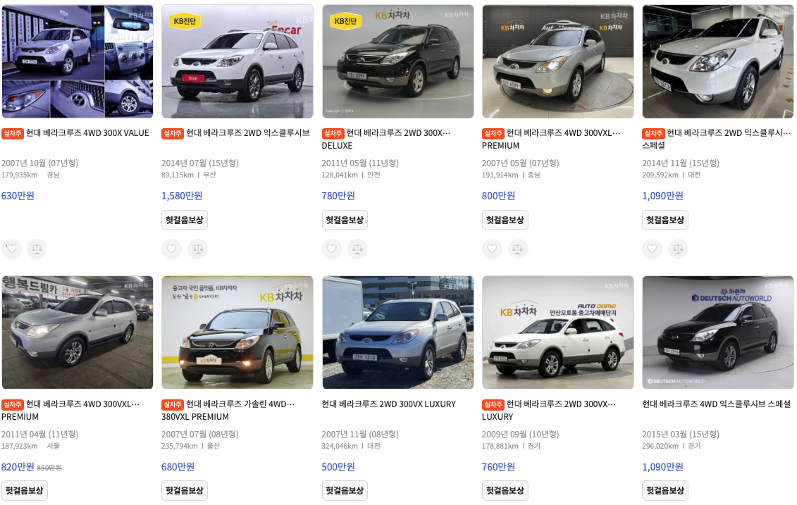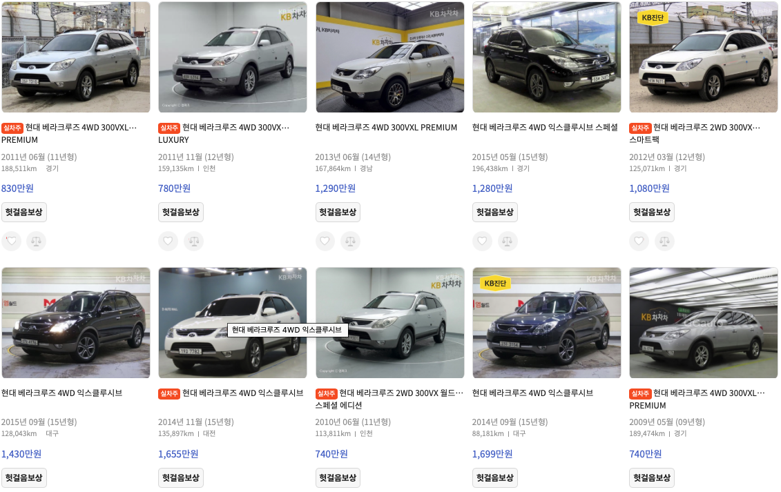 KB차차차 베라크루즈 중고차 가격