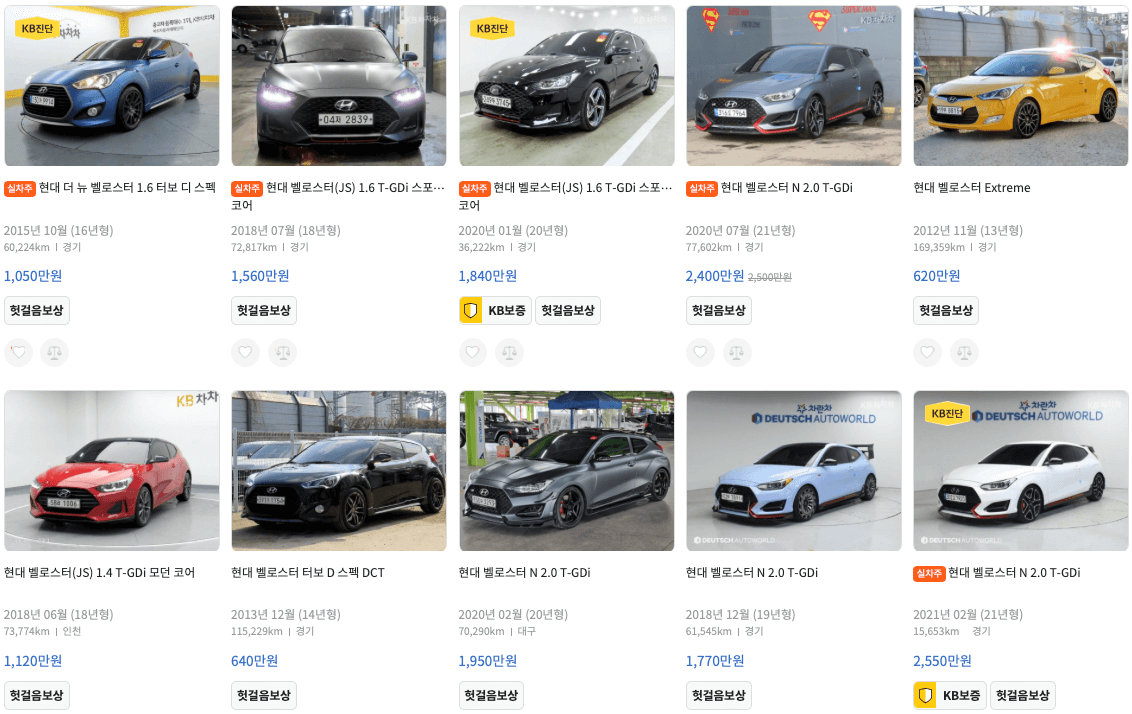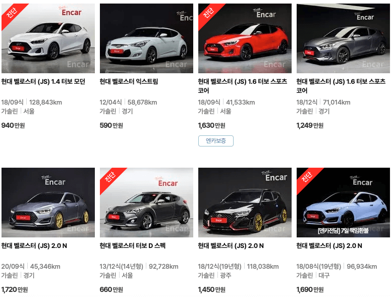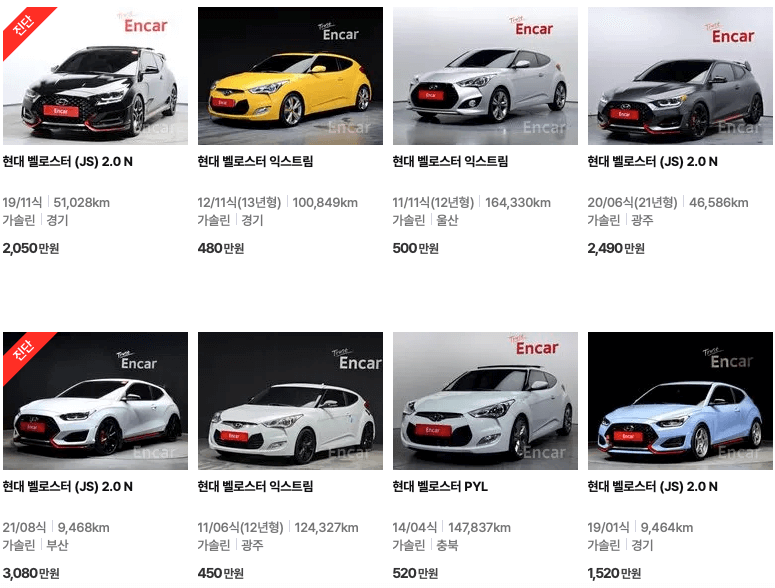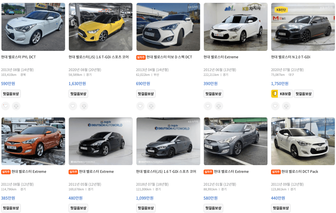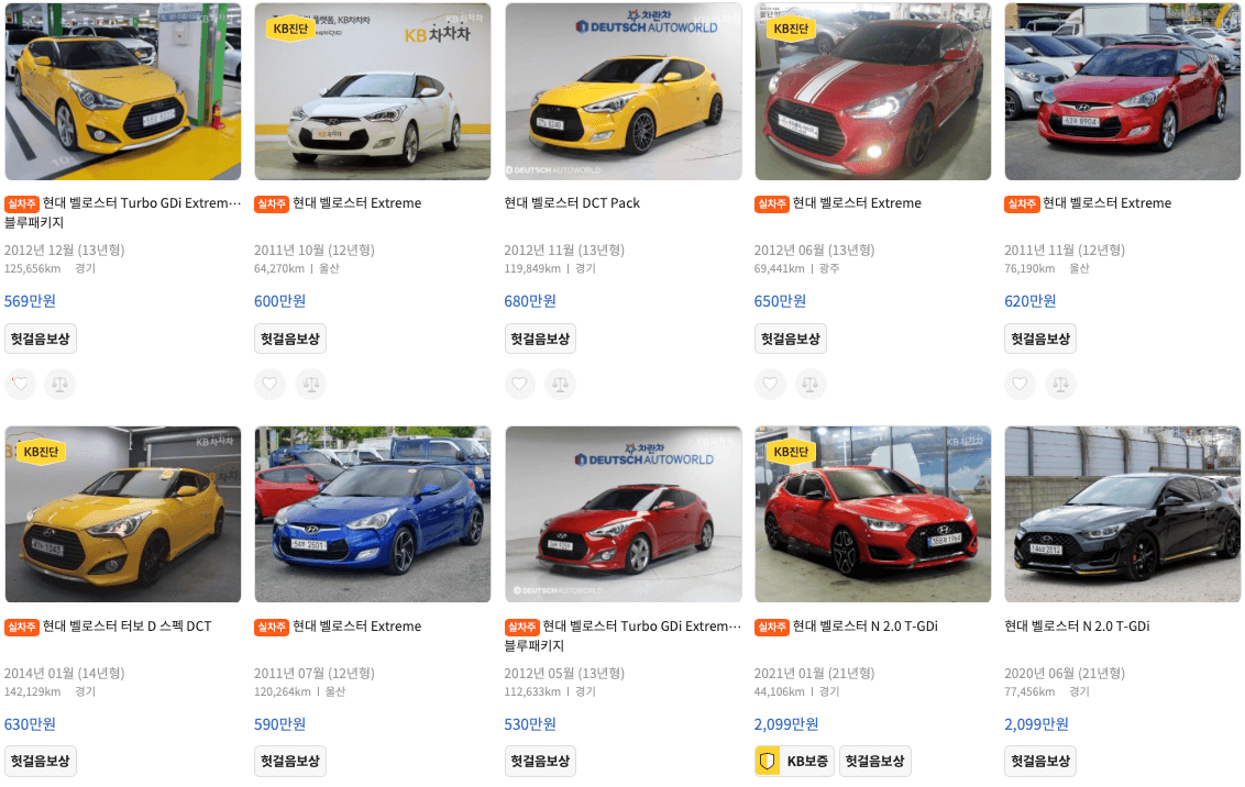 벨로스터 연식별, 모델별로 중고차 가격과 시세를 정리했습니다.