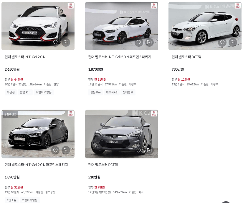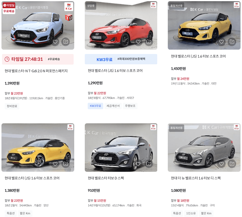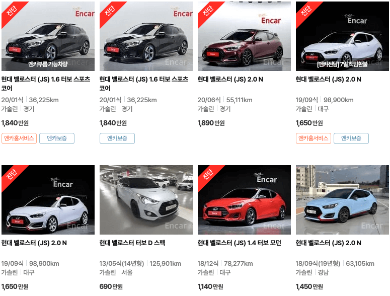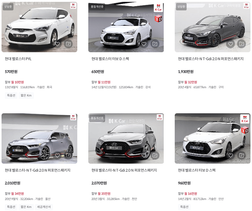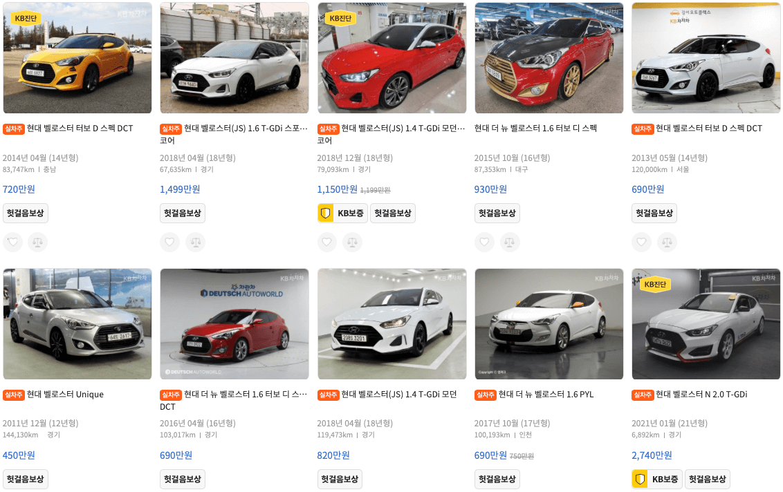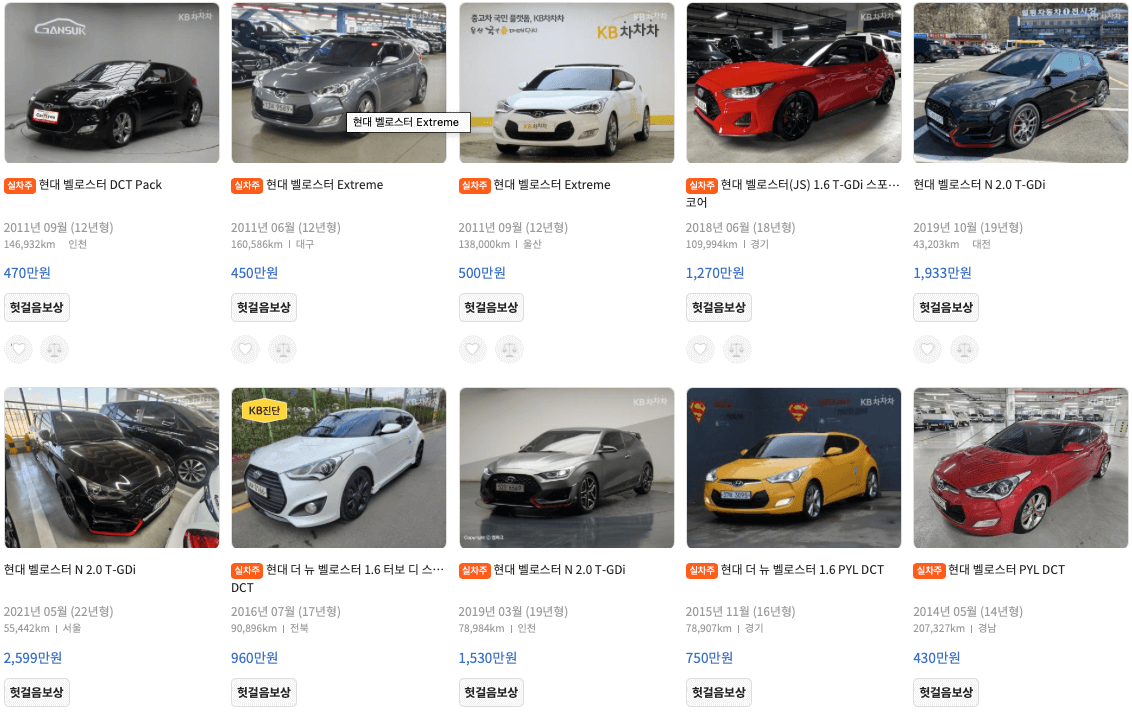 벨로스터 연식별, 모델별로 중고차 가격과 시세를 정리했습니다.