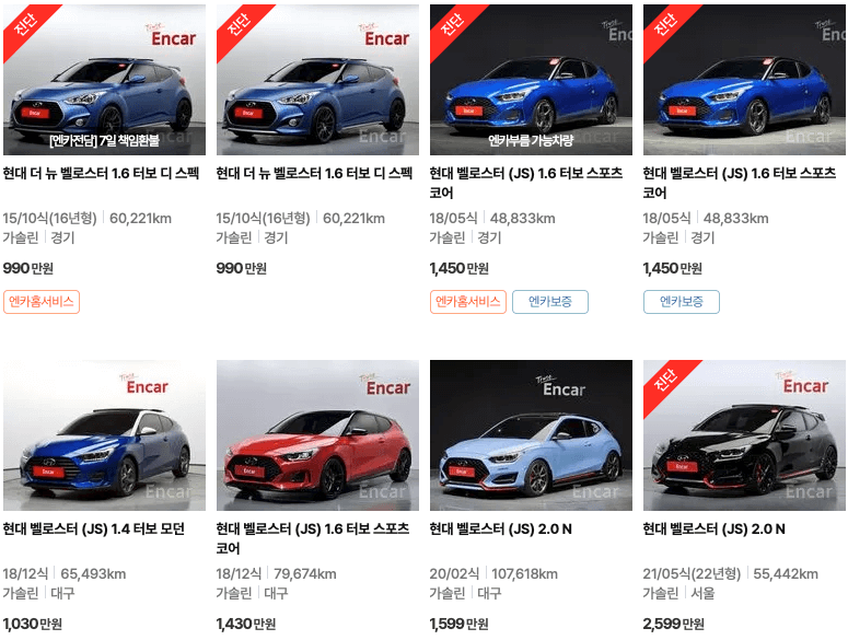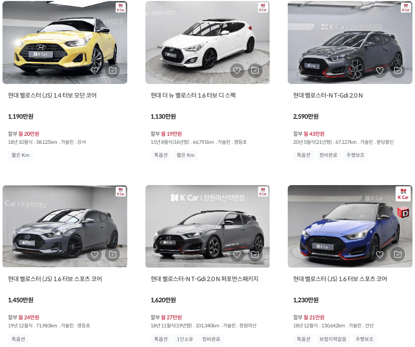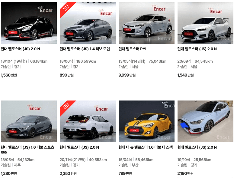 벨로스터 연식별, 모델별로 중고차 가격과 시세를 정리했습니다.