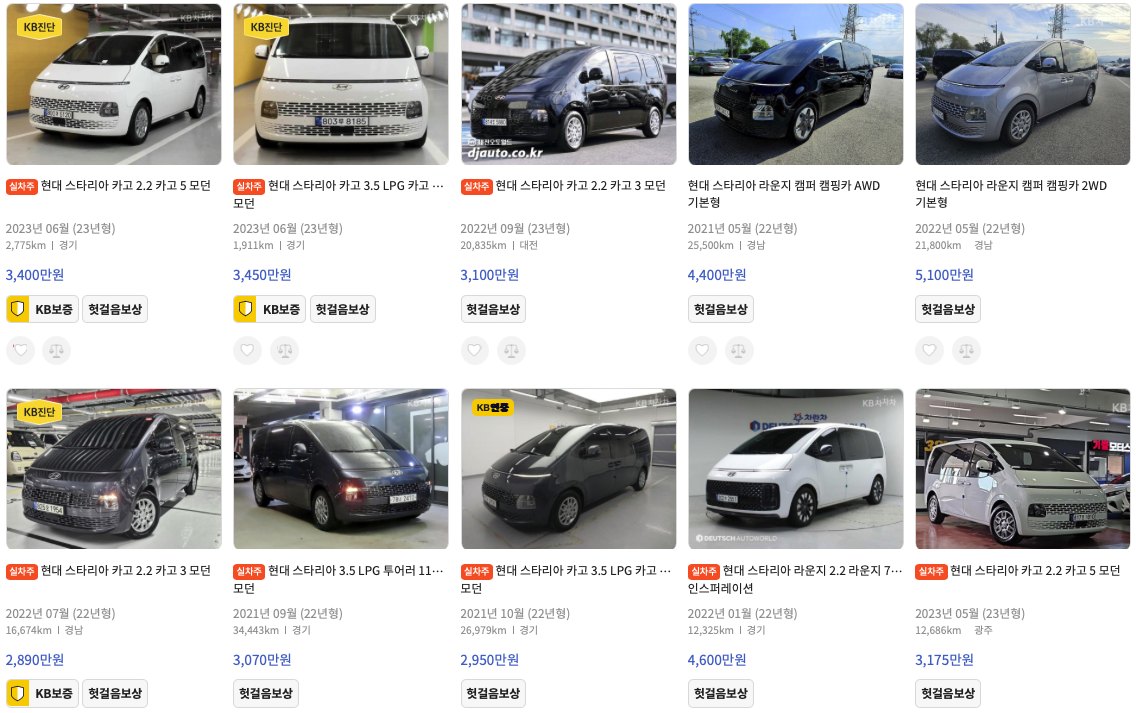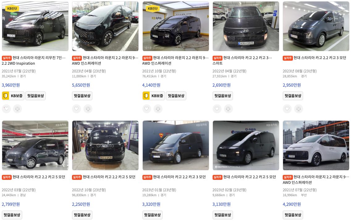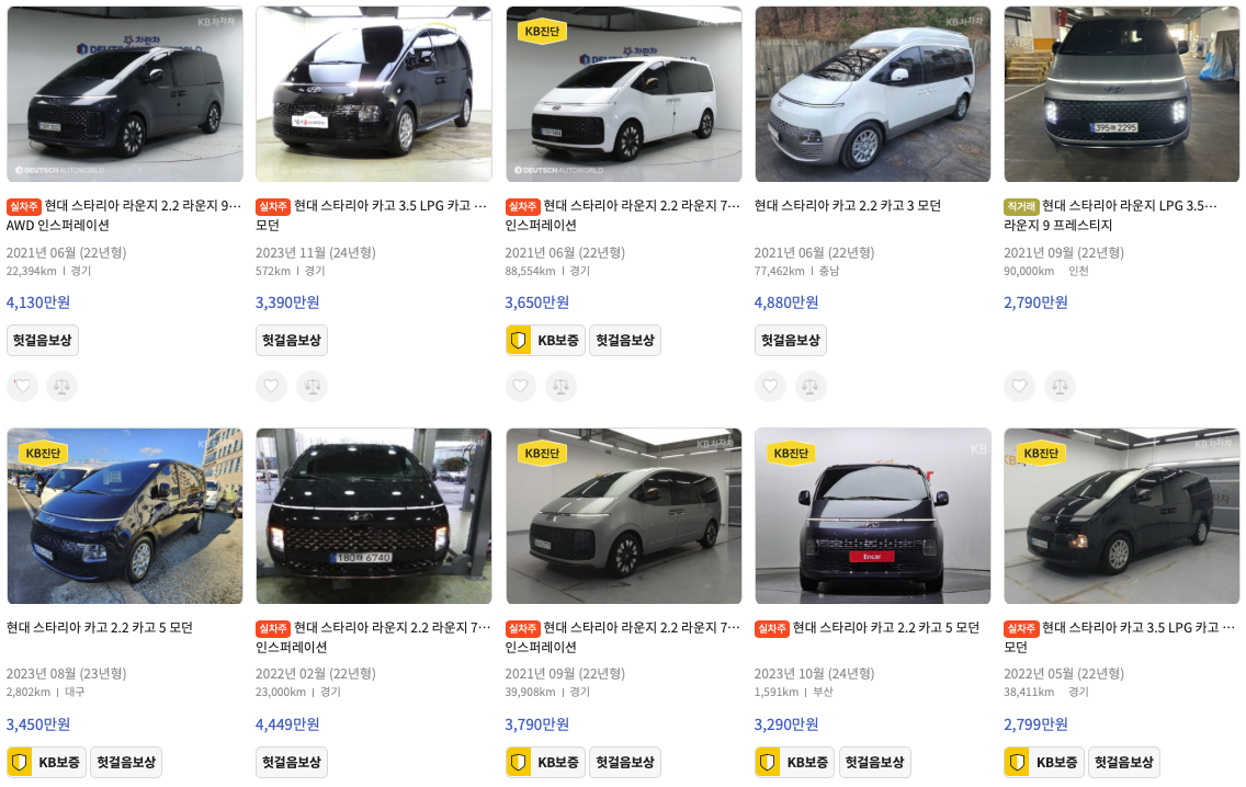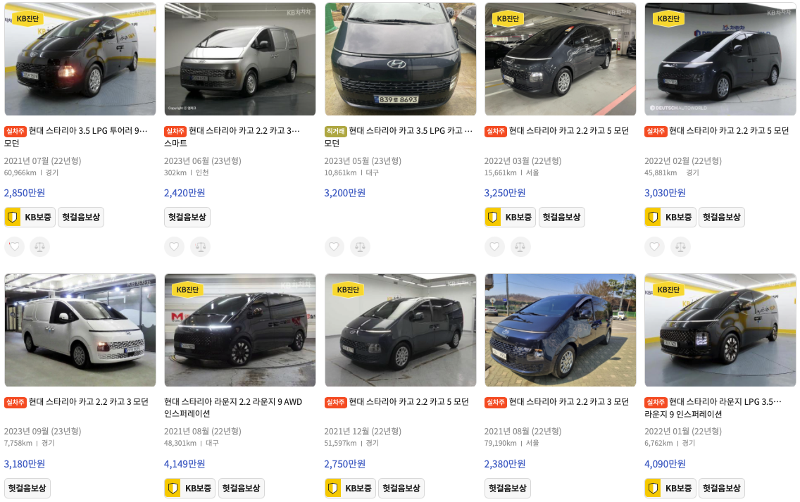 KB차차차 스타리아 중고차 가격