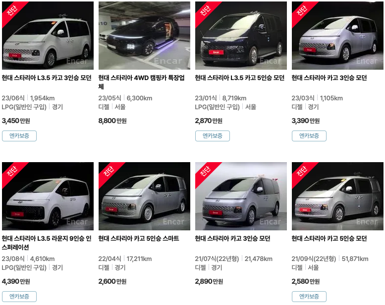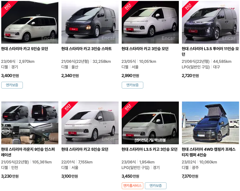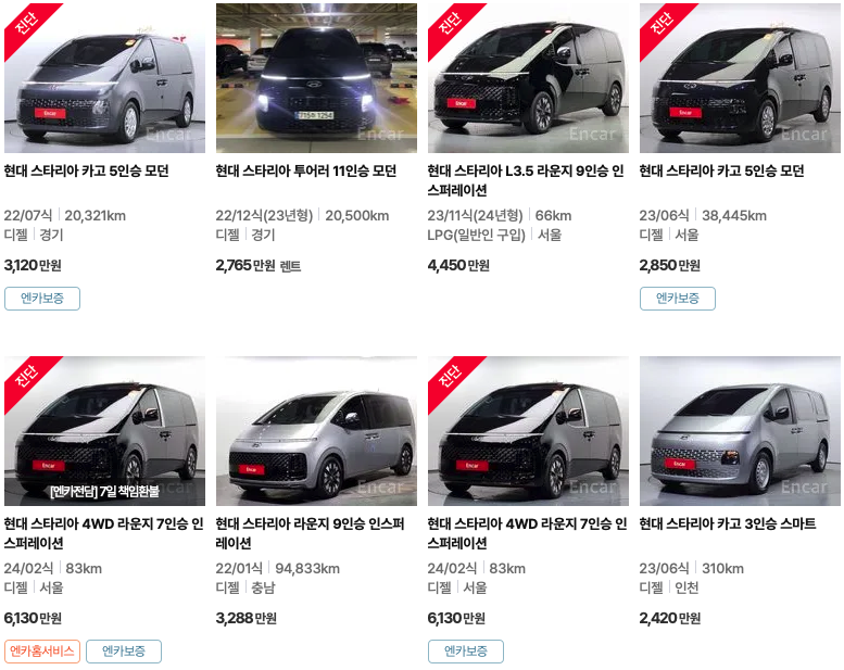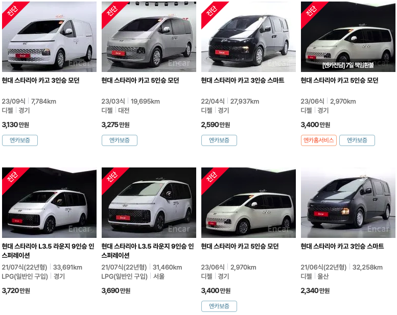 엔카 등록 스타리아 중고차 가격
