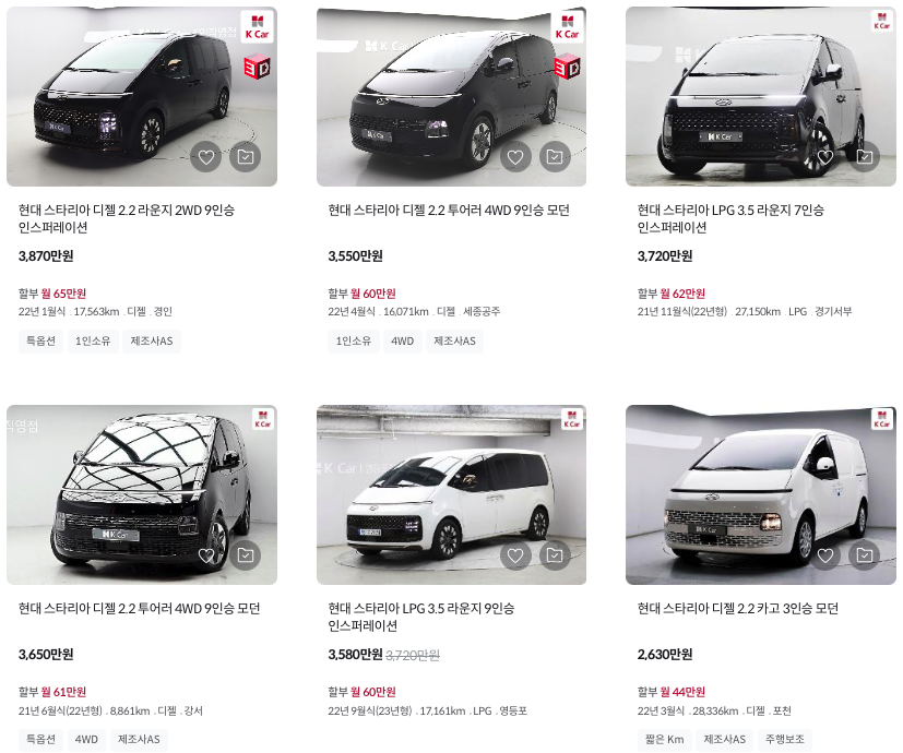 K카 등록 스타리아 중고차 가격
