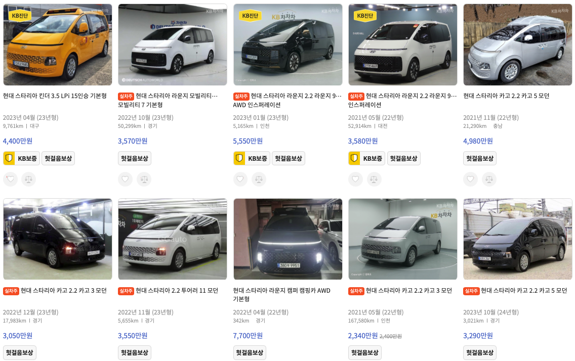 KB차차차 스타리아 중고차 가격