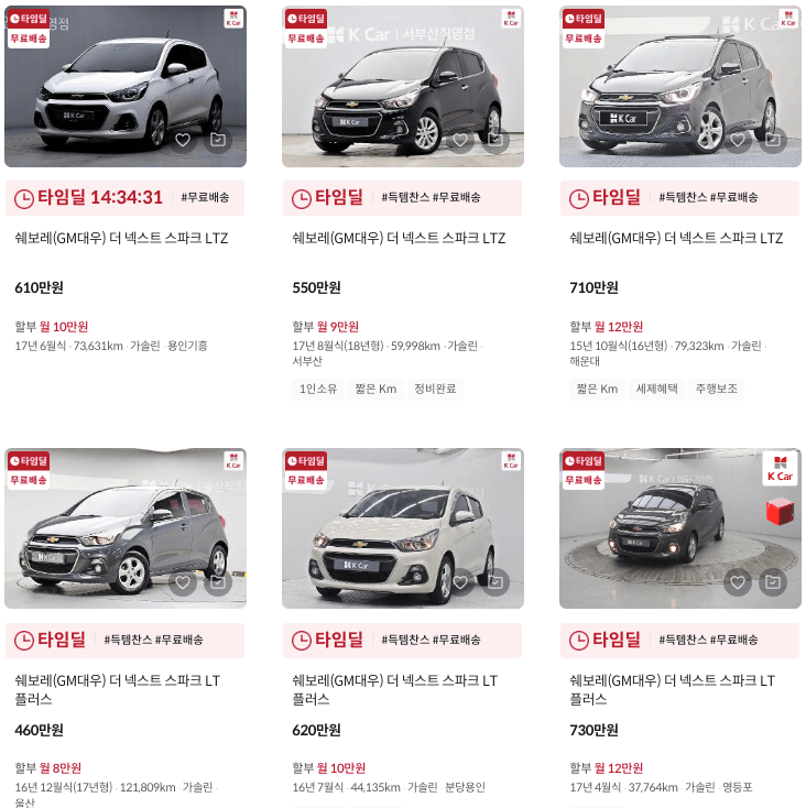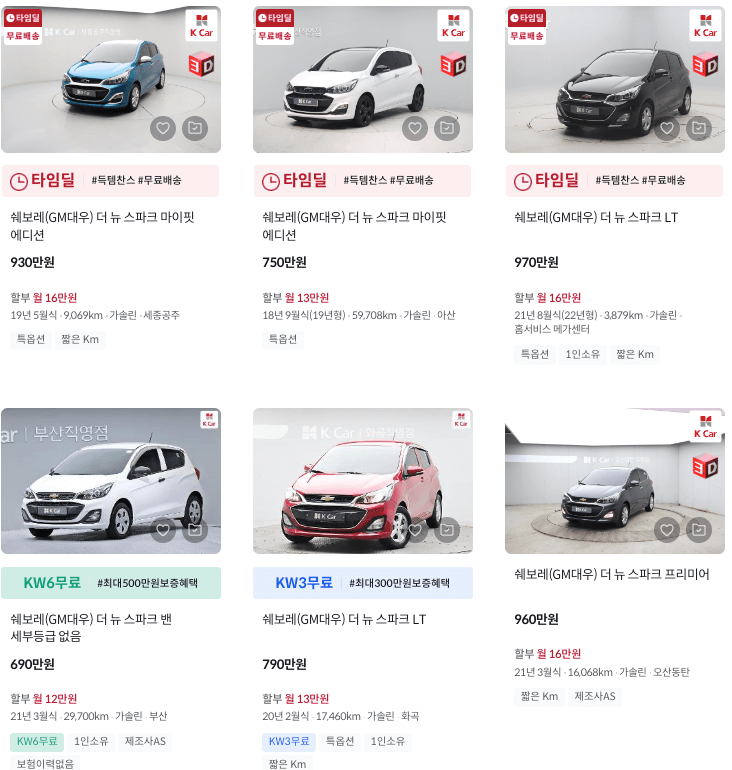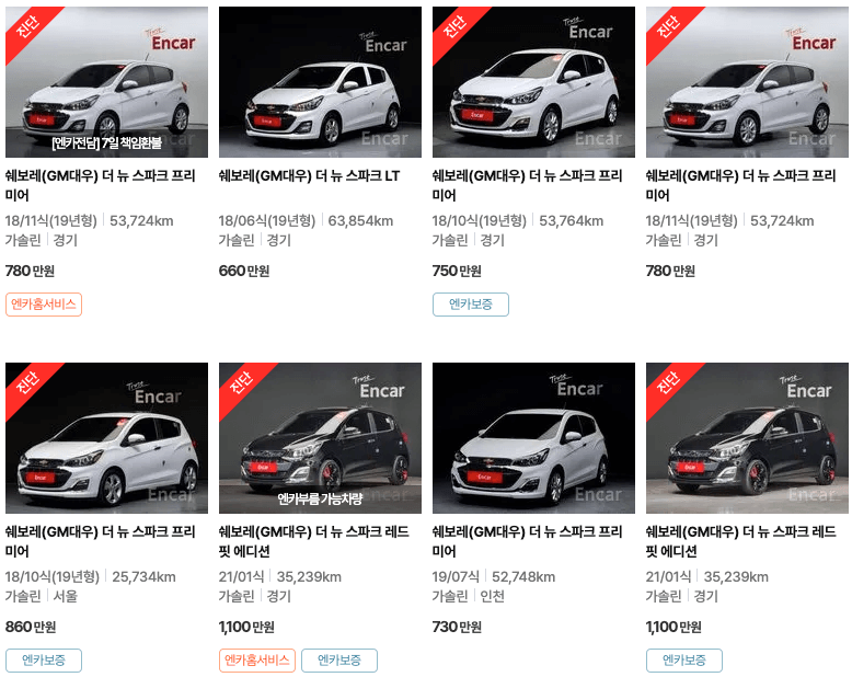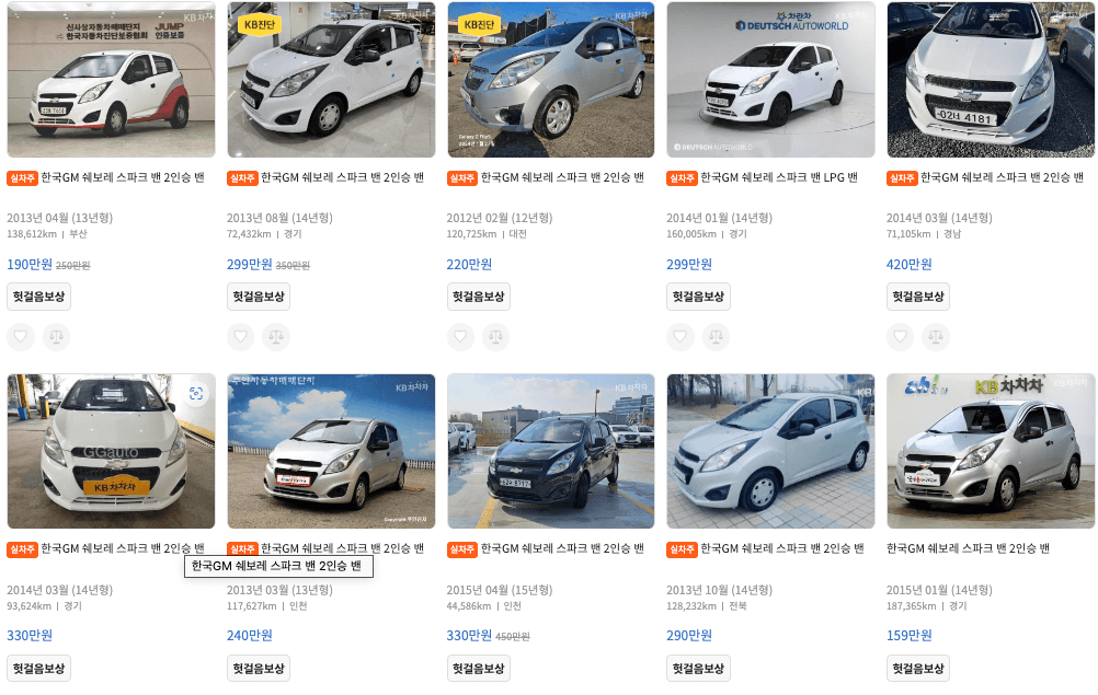 스파크 중고차 가격과 시세표 완전 정리했습니다. 더 뉴 스파크, 더 넥스트, 구형 스파크 등 전체 모델을 모았습니다. 2011년부터 2023년 중고 시페입니다.