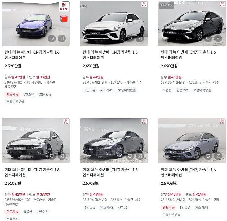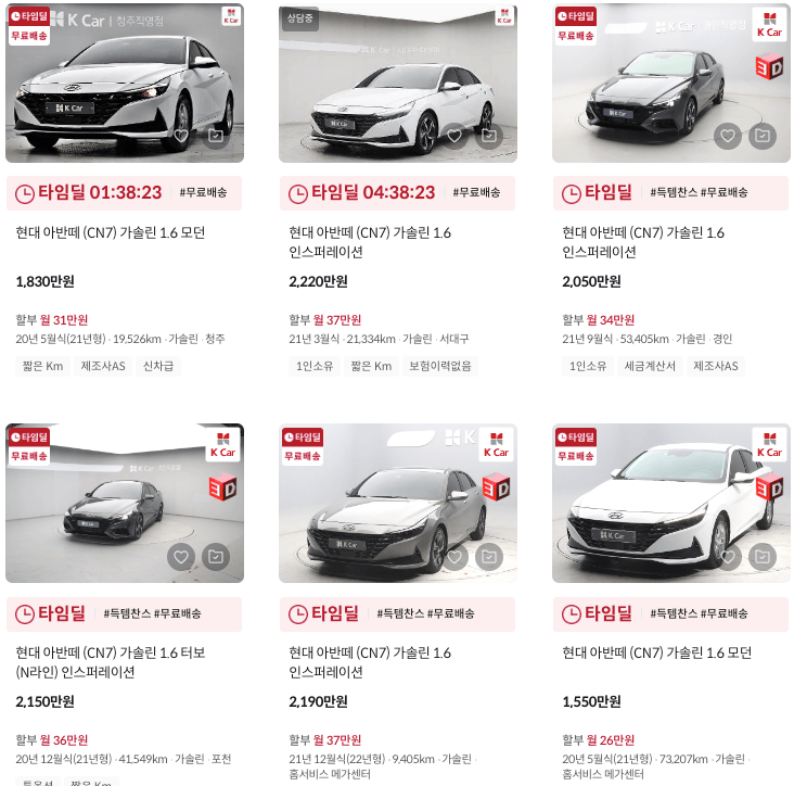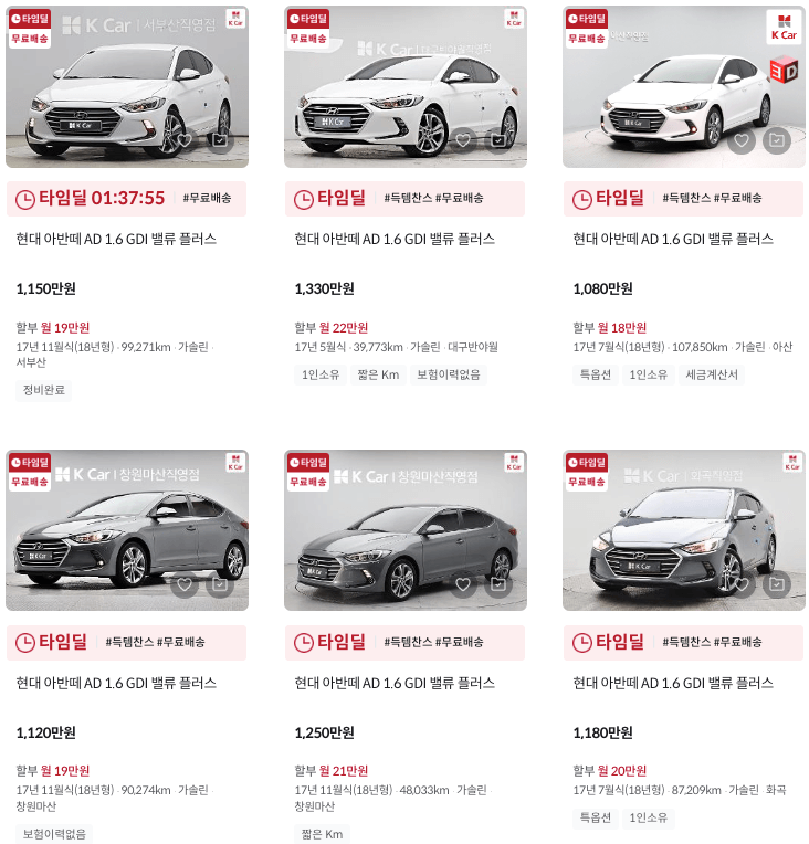 K카 등록 아반데 중고차 매물