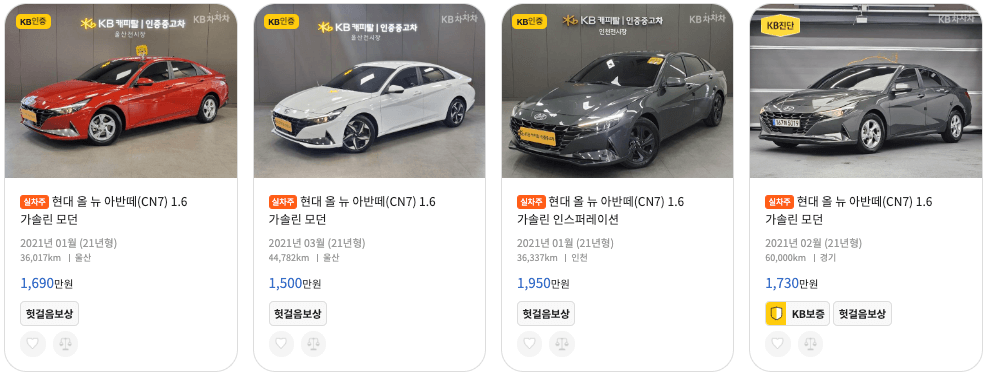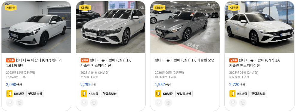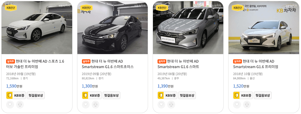KB차차차 아반떼 중고차 매물