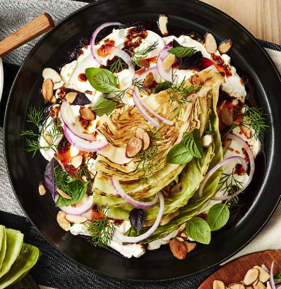 - 만드는 법: 양배추 몸통을 2cm 두께로 썰고, 올리브유를 바른 후 바질, 다진 마늘, 소금, 후추로 양념합니다. 180도 오븐에서 20분가량 구워내면 고소하고 부드러운 스테이크가 됩니다.