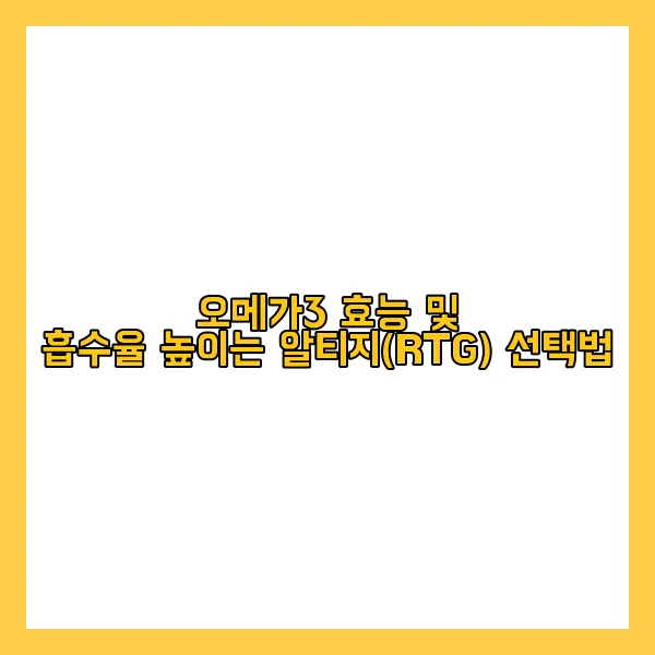 신뢰할 수 있는 제조사의 제품을 선택하세요. • 제품에 함유된 rTG 함량을 꼭 확인하세요. • 개인의 건강 상태와 목적에 맞는 추가 성분이 포함된 제품을 고르세요. • 비타민 E, 기타 영양소 등 보조 성분도 고려해 보세요. rTG 오메가3는 특히 오메가3 흡수율이 낮거나, 고강도 운동을 하는 경우, 피부 건강 개선이 필요한 경우에 효과적이에요. 제품 선택 시 신뢰성과 rTG 함량, 추가 성분을 꼼꼼히 확인하세요!