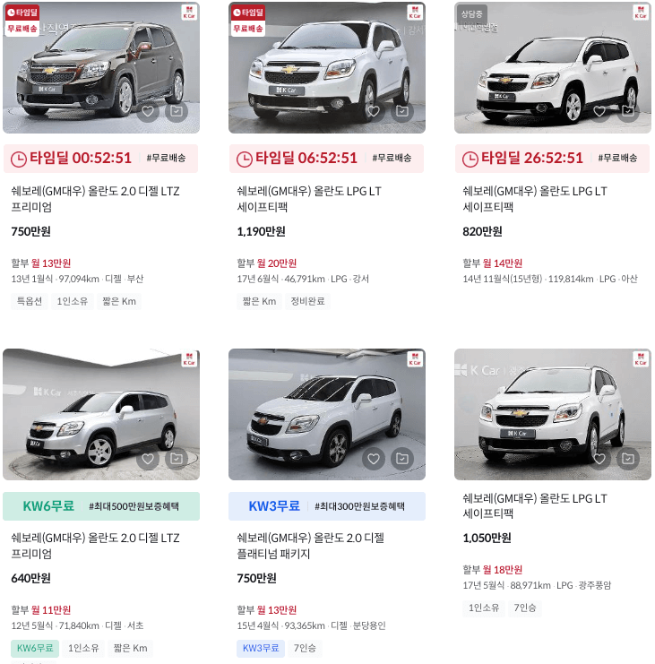 올란도 출시부터 현재까지 중고차 가격과 시세를 모두 정리했습니다.