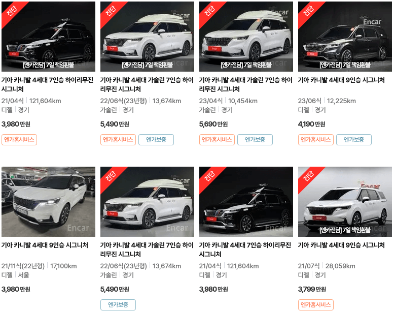 카니발 중고차 가격 엔카등록