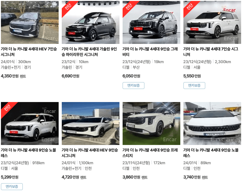 카니발 중고차 가격 | 2024년 7인승 9인승 올 뉴 그랜드 | 중고 시세표 | 20009~2024