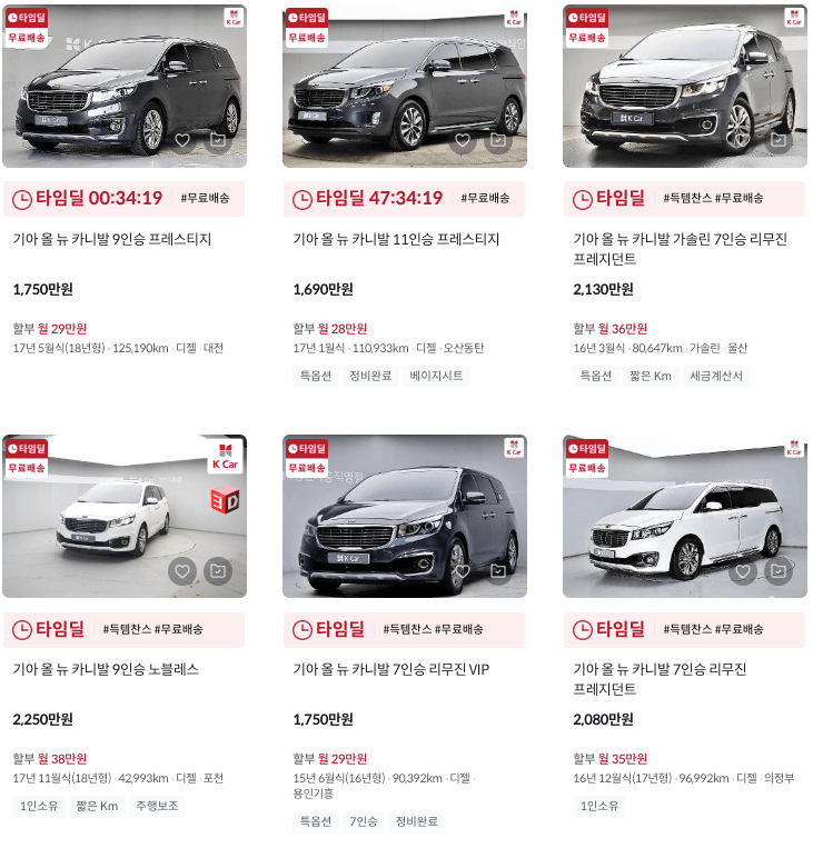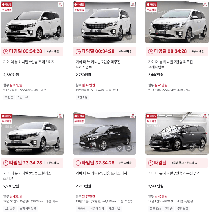 K카 카니발 중고차 가격