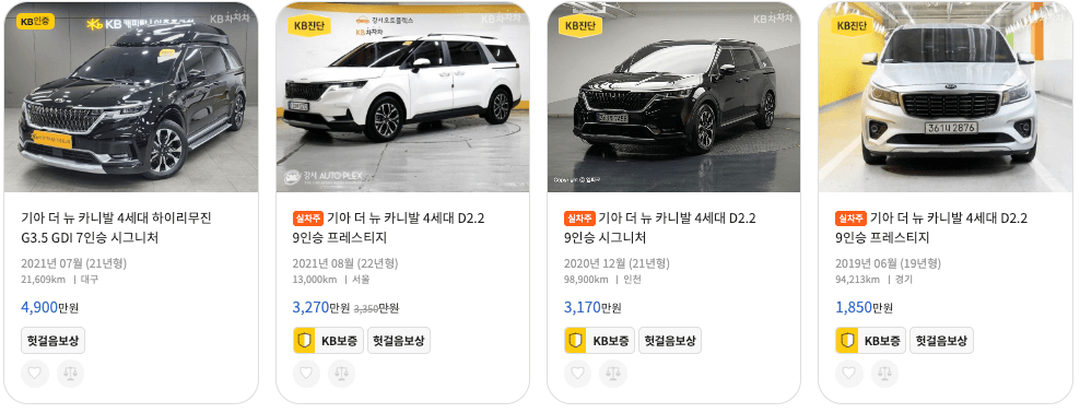 KB 차차차 카니발 중고차 가격