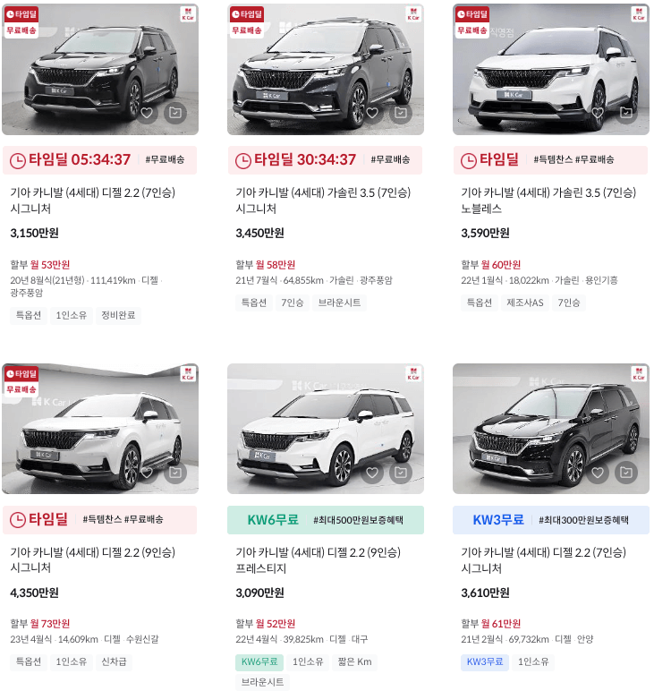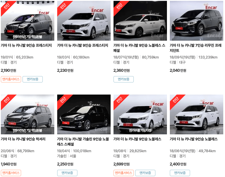 기아 카니발 중고차 가격과 시세를 모두 정리했어요. 올 뉴 그랜드, 7인승, 9인승 전 모델 반영했습니다. 모델별, 연식별 시세를 표로 정리했고요. 대형 3대 중고차 사이트 매물까지 반영했으니 카니발 중고차 구입 고려하시는 분들이라면 참고할 수 있습니다.