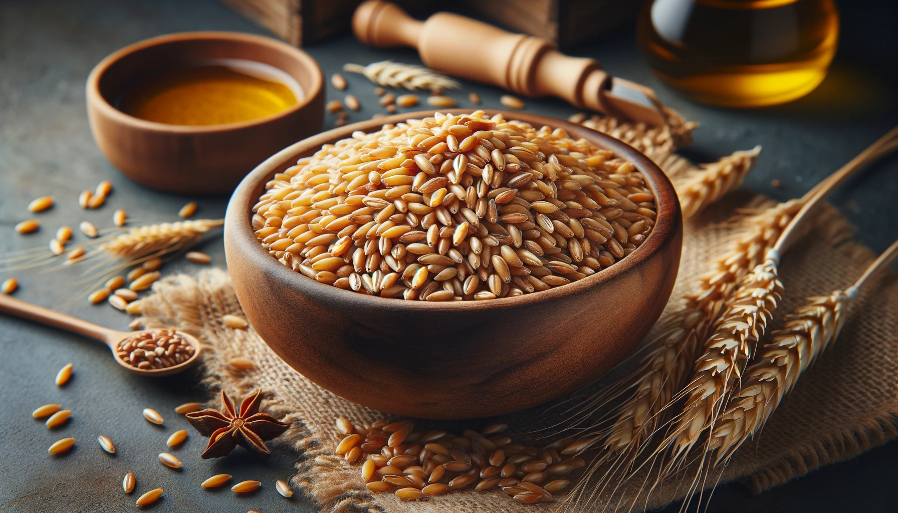카무트는 단백질 함량이 높습니다. 100g당 약 14g의 단백질을 제공하며, 이는 일반 밀보다 약 20-40% 더 높은 수치입니다.