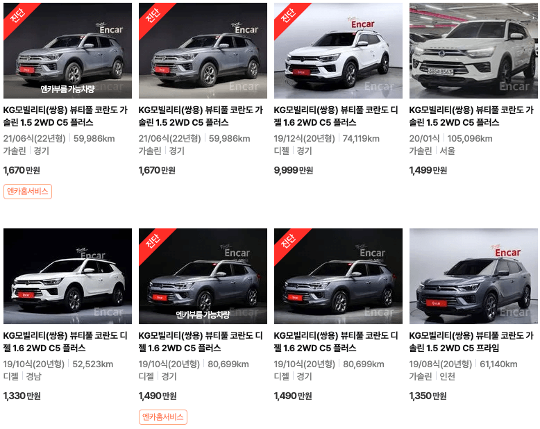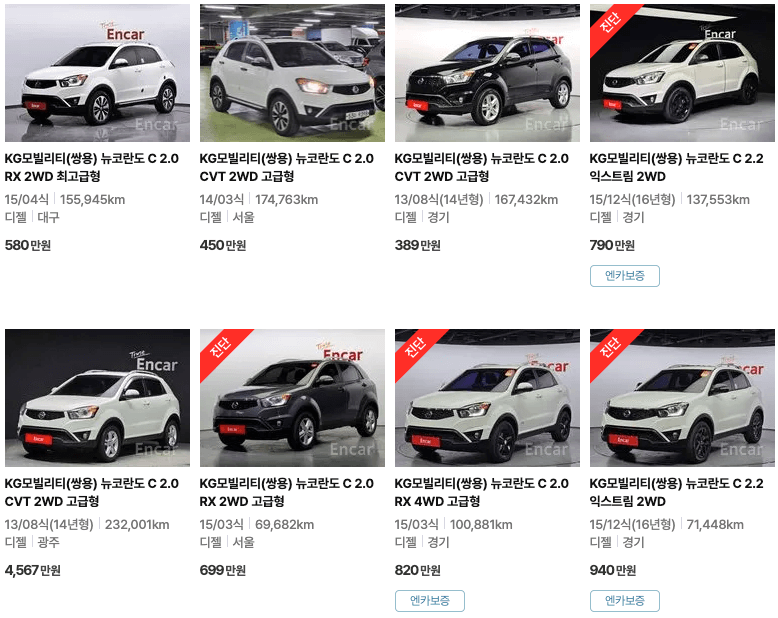 엔카 코란도 중고차 가격