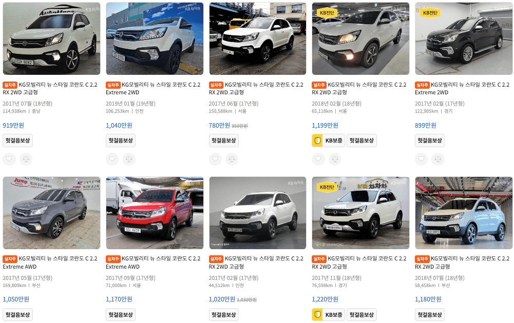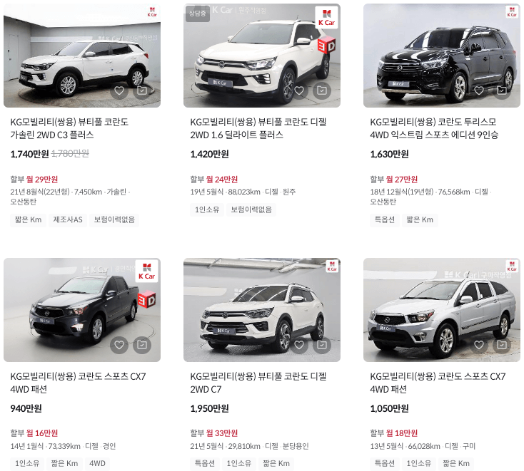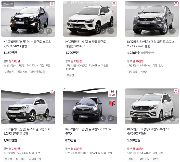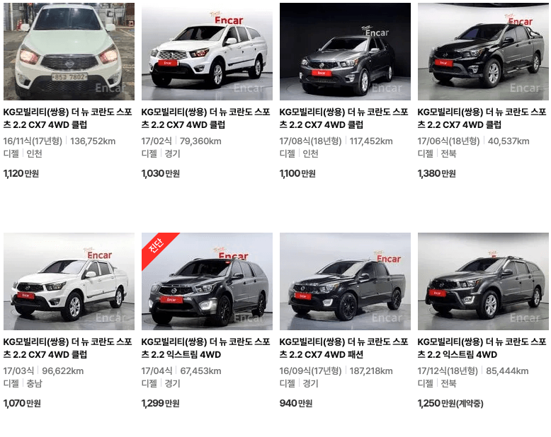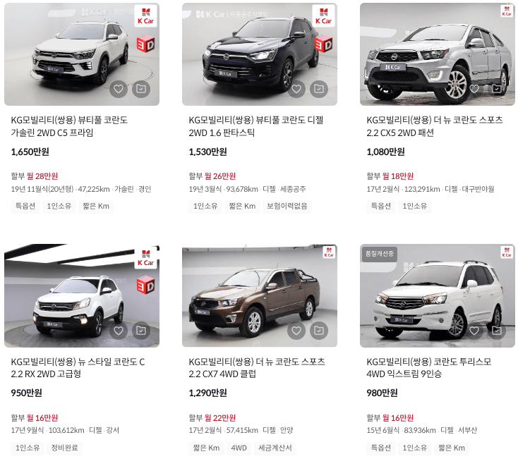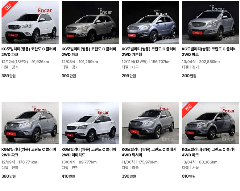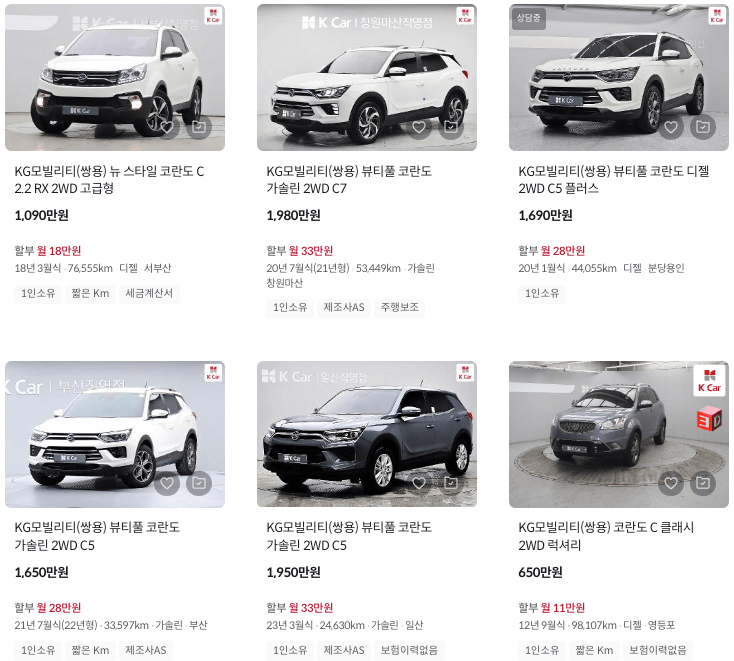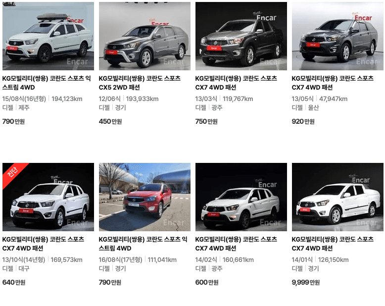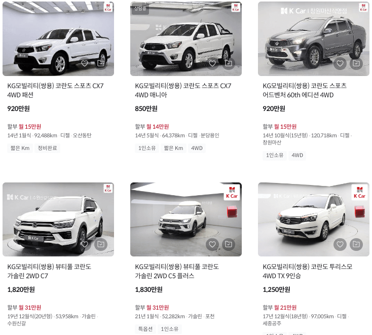K카 등록 코란도 중고차 가격