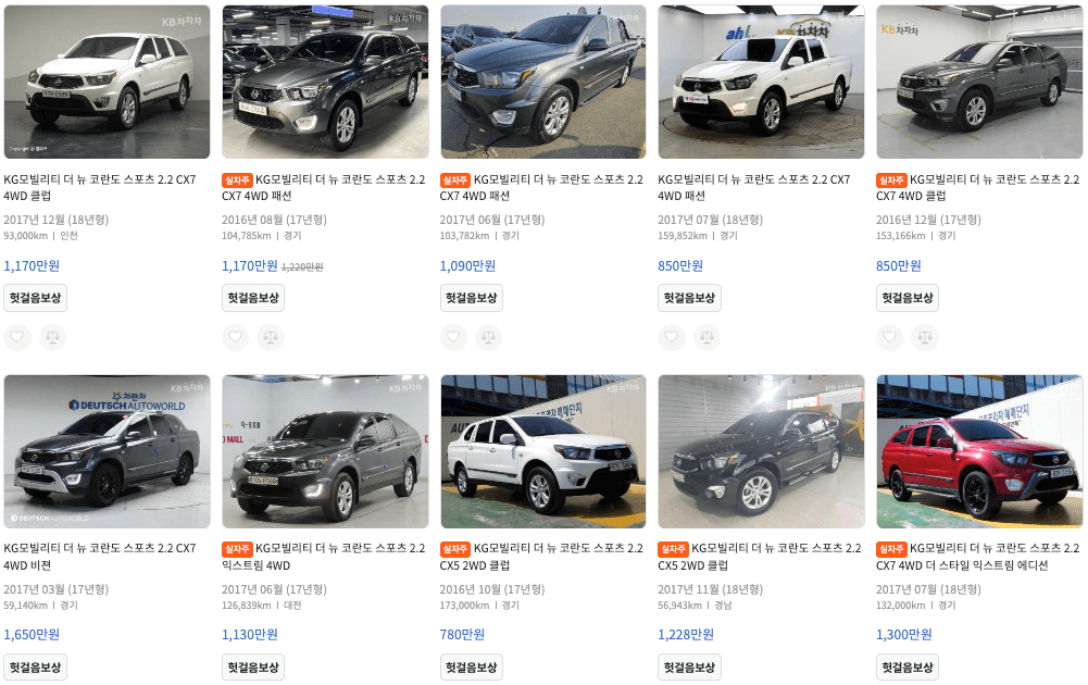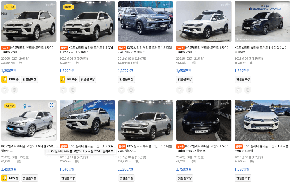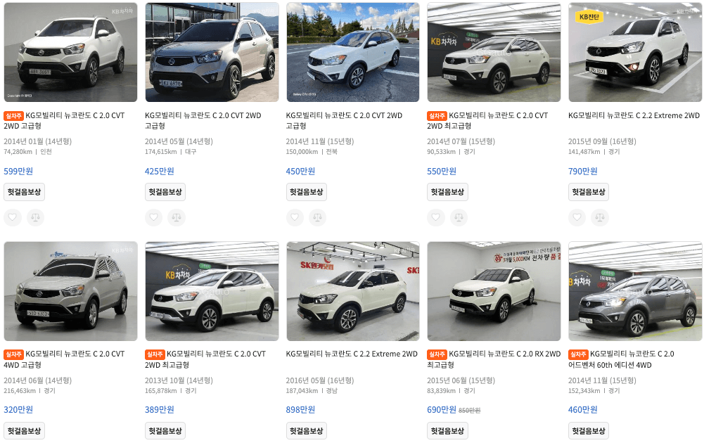 KB차차차 코란도 중고차 가격