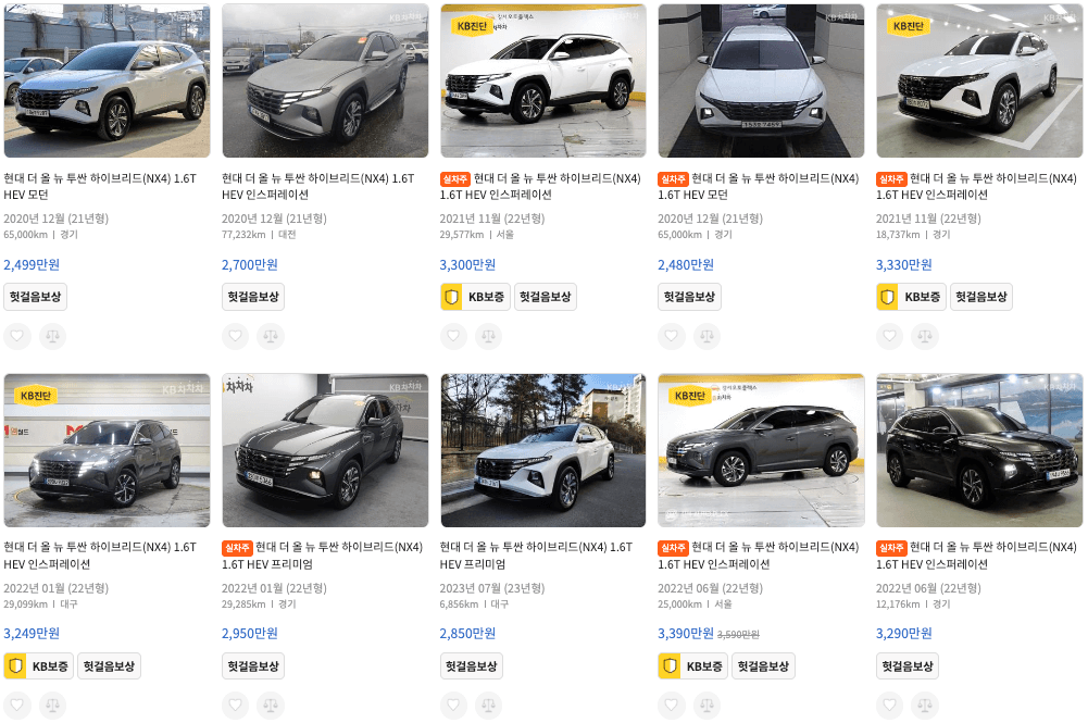디 올 뉴 투싼 하이브리드 중고 시세표
