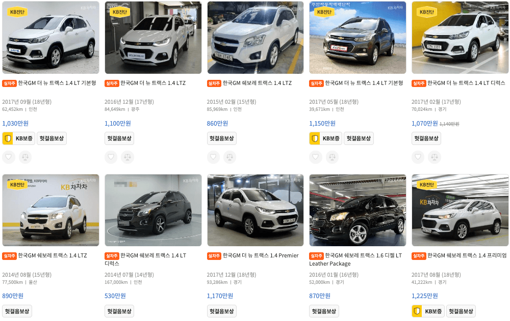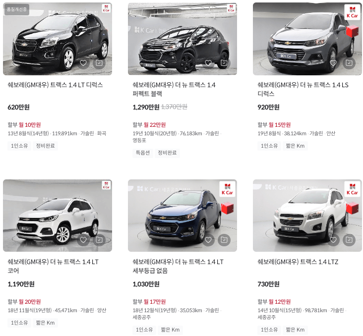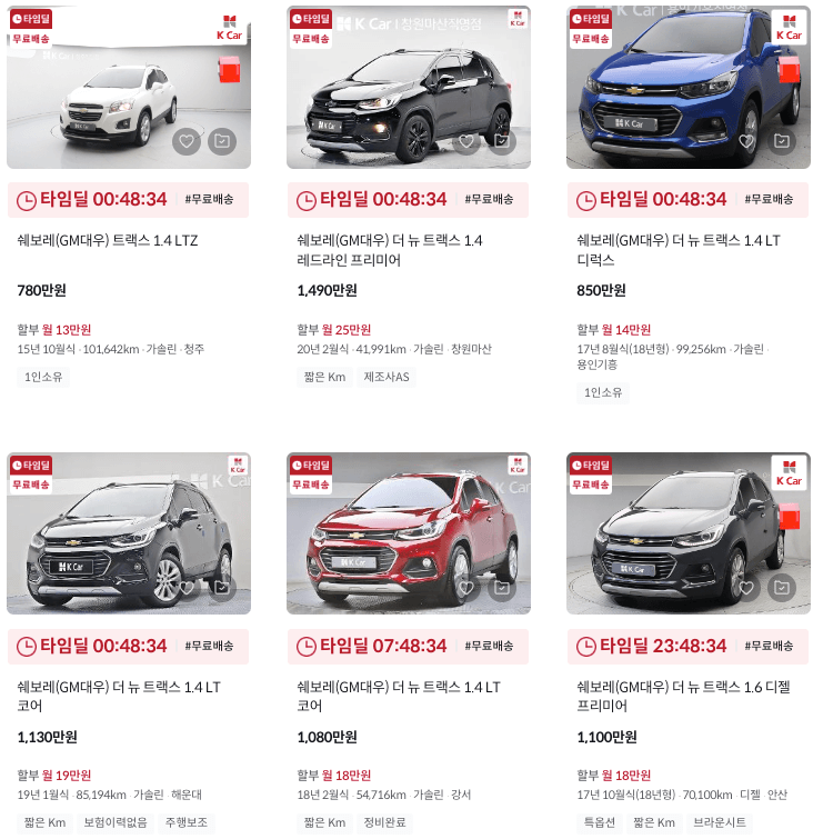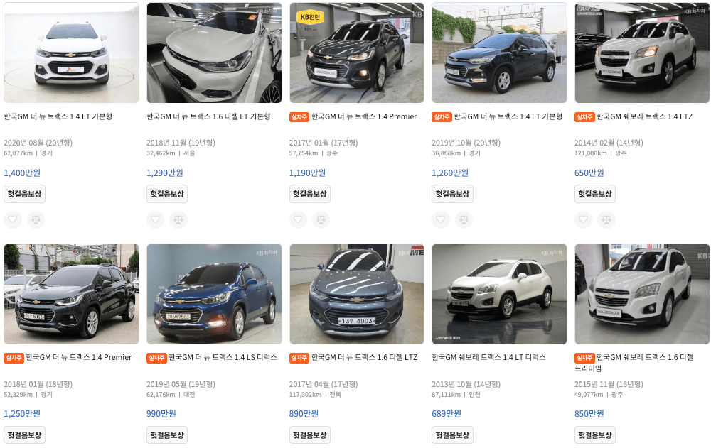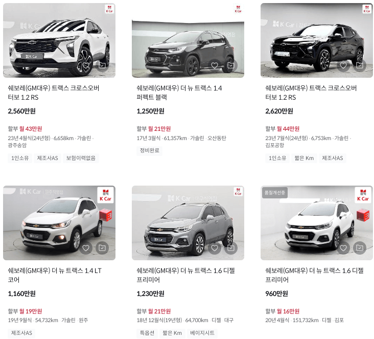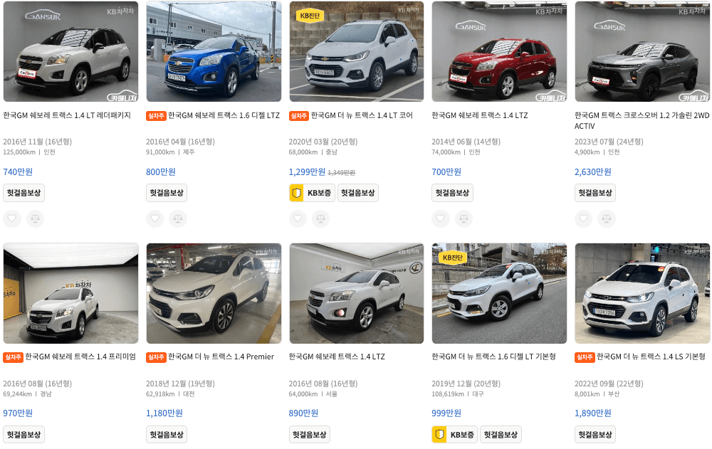 쉐보레 트랙스 중고차 가격 총정리했습니다. 크로스오버, 더뉴, 구형 각 모델을 모두 확인 가능해요. 2013년에서 2024년식입니다. 쉐보레 트랙스는 한국GM이 개발한 소형 스포츠 유틸리티 자동차(SUV)입니다. 2013년 2월에 출시되었으며, 아베오의 전륜구동 플랫폼을 기반으로 개발되었습니다. 트랙스는 140마력 1.4리터 에코텍 가솔린 터보와 1.6리터 디젤 엔진이 장착되어 있습니다. 2023년 2월부터 GM 한국사업장 창원공장에서 생산 중인 2세대 모델도 있습니다.