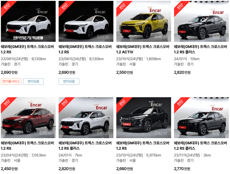 연식별, 전모델별 중고차 가격과 시세표를 확인할 수 있어요.