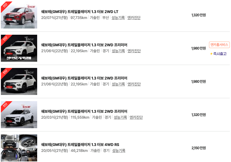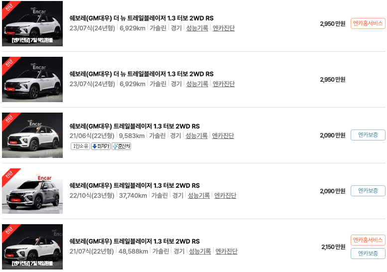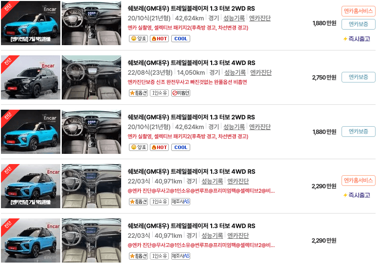 쉐보레 트레일블레이저 중고차 정보에 대해 보다 자세히 알려드릴께요.