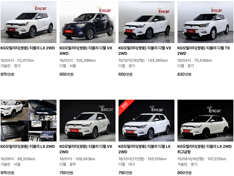 티볼리 연식별, 모델 중고차 가격과 중고시세표 바로 확인해보세요.