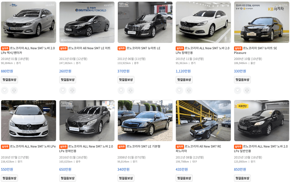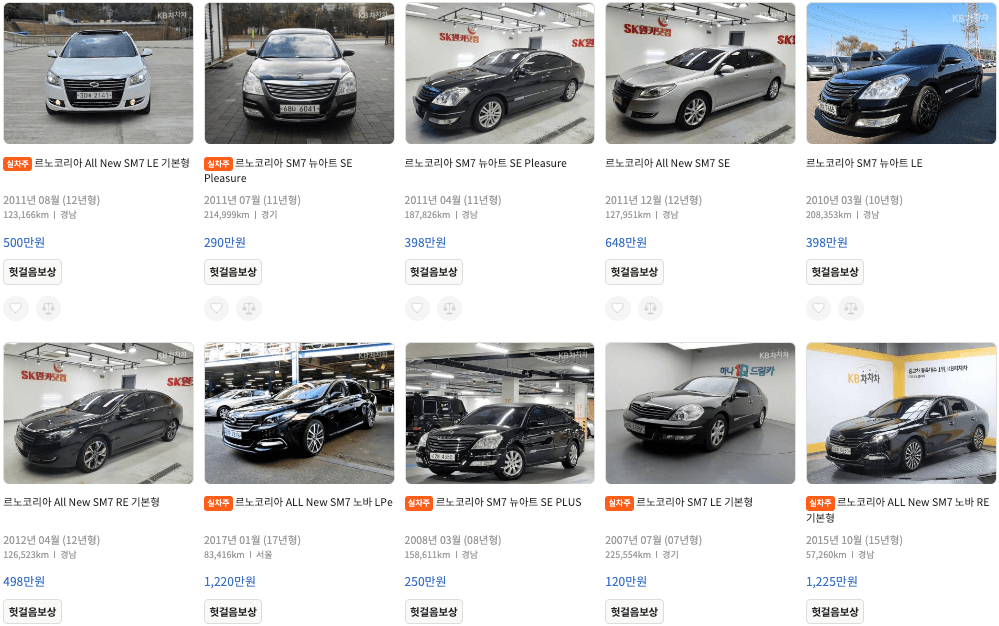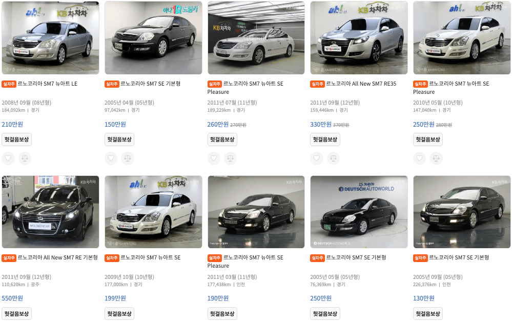 SM7 중고 모델별, 연식별 시세표와 중고차 가격을 확인해보세요.