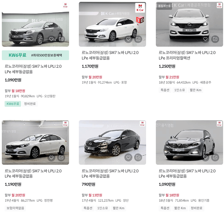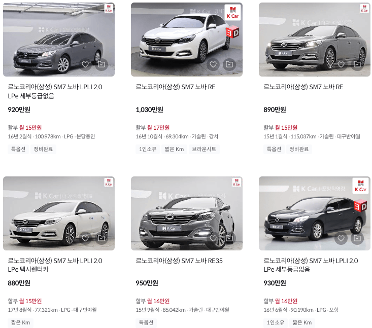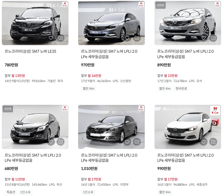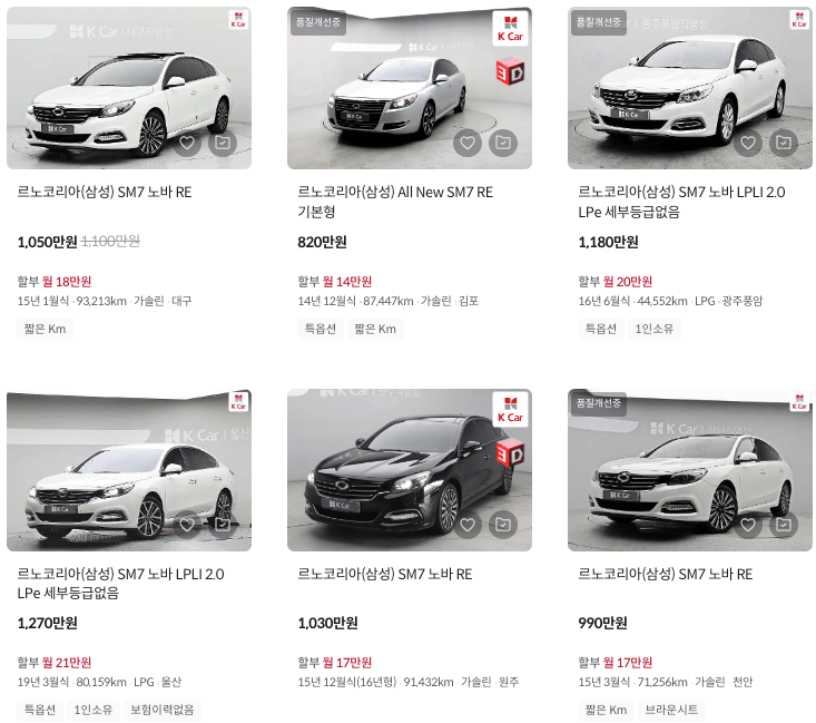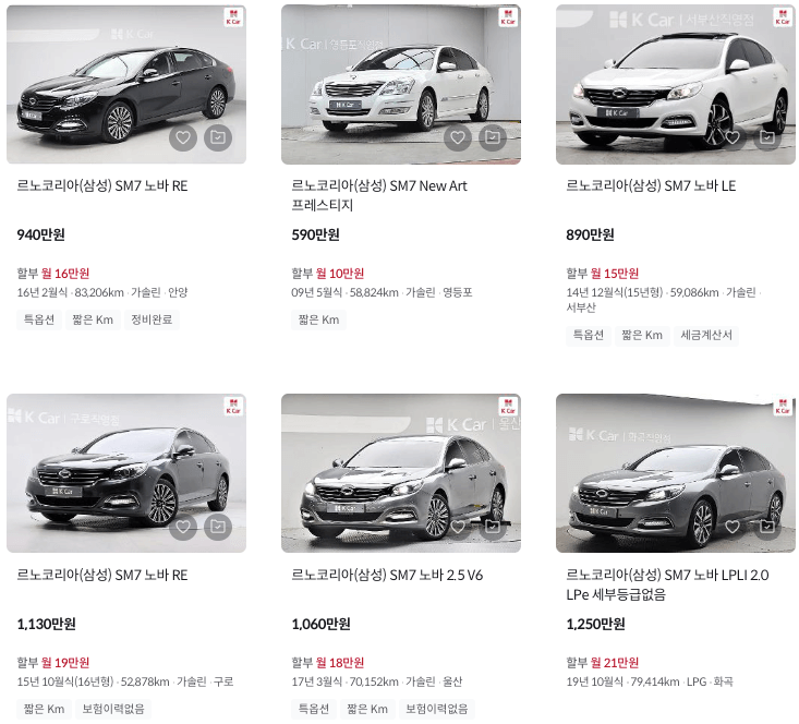 K카 등록 SM7 중고차 가격