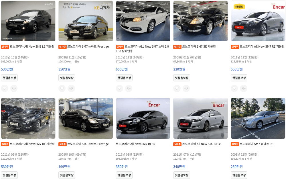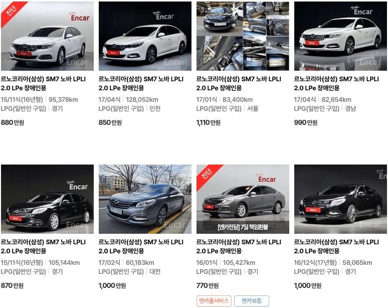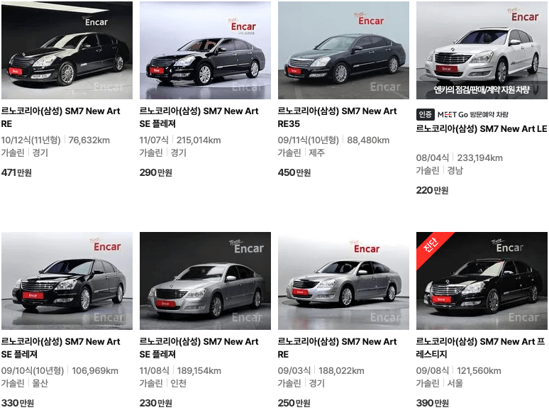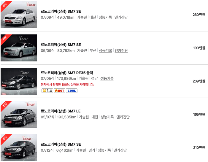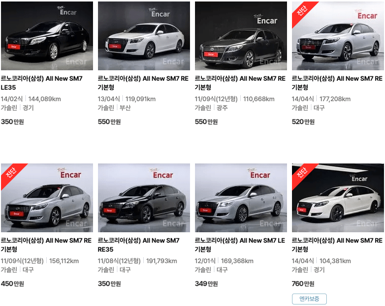 엔카 등록 SM7 중고차 가격