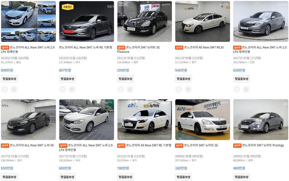 KB차차차 등록 SM7 중고차 가격
