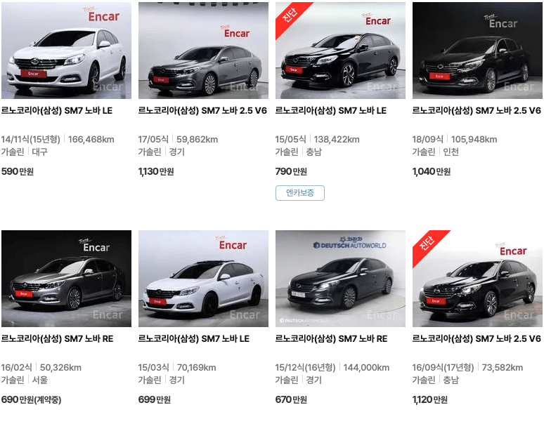 SM7 중고 모델별, 연식별 시세표와 중고차 가격을 확인해보세요.