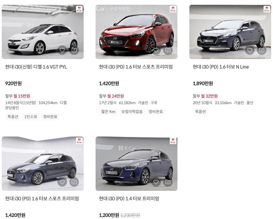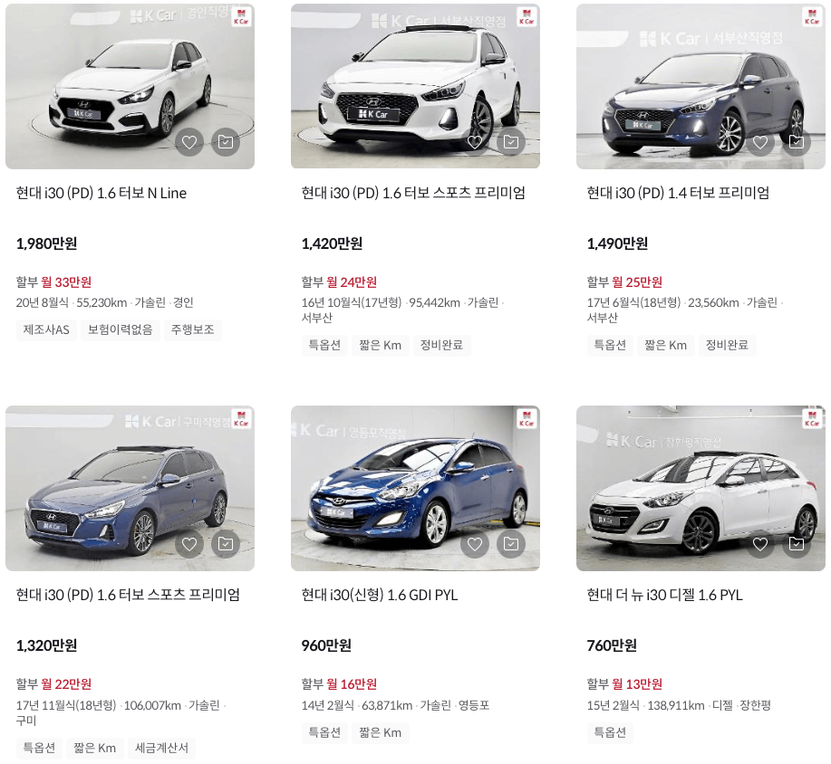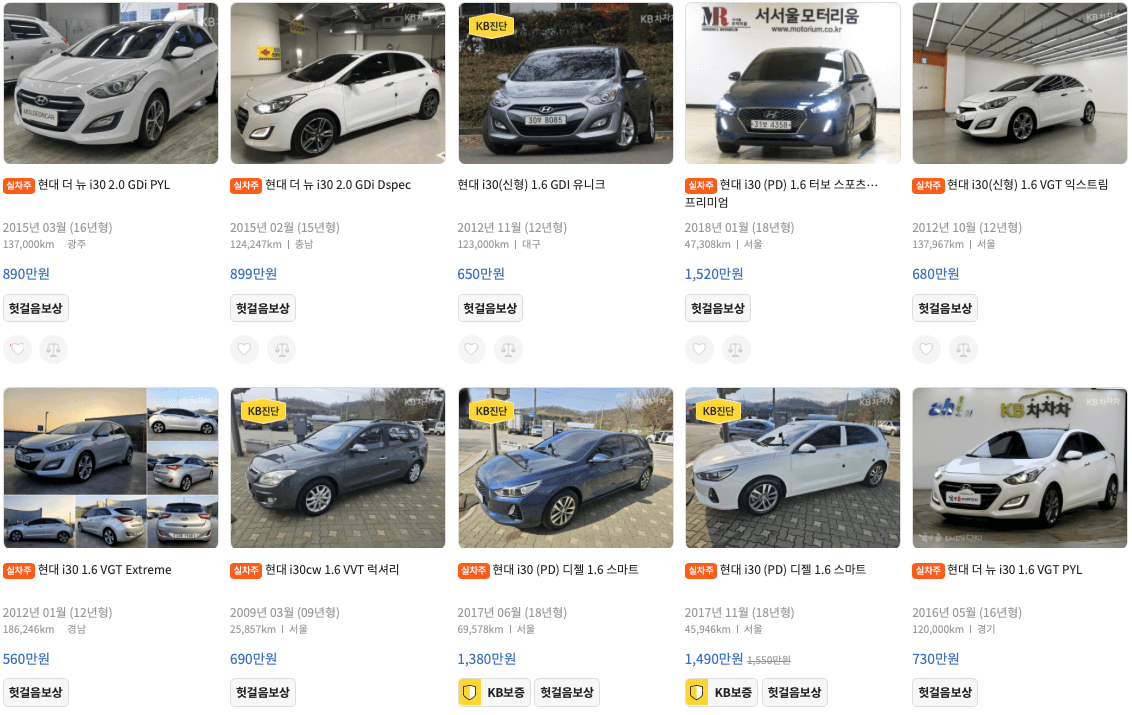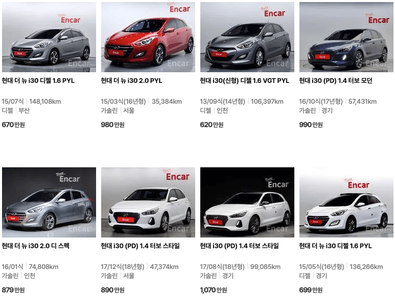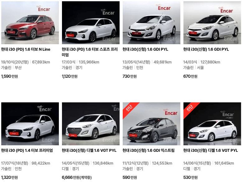 i30 연식별, 모델별 중고차 가격과 시세를 최신 정리했습니다.