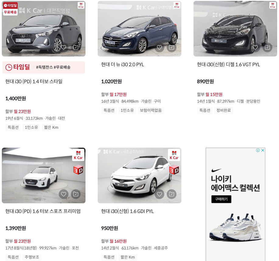 i30 중고차 가격 | PD 더 뉴 CW | 중고시세표